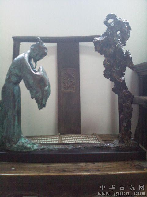 国内有不少以“米癫拜石”为题材的园林景观。这里有二个概念:或是仿照米芾拜的石峰,也即“石丈”为主体的独峰景观;或是以米芾拜“石丈”的组合景观。其中“石丈”是太湖石,灵壁石等不同石峰,而形态逼真的米癫则既有拟人的石峰,又有铜雕、根雕,还有近代发展的玻璃钢仿铜雕。