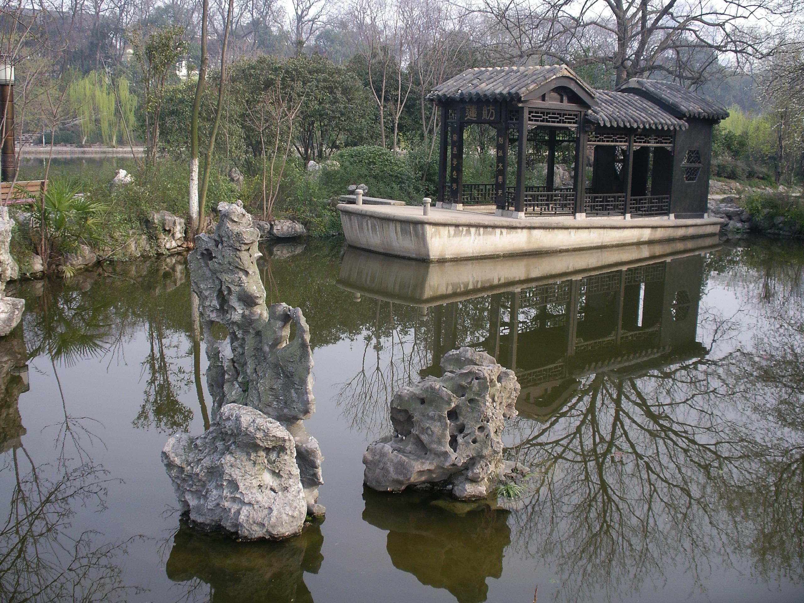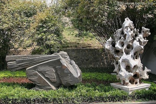 这是米芾拜石的组合景观,座落于武汉黄鹤楼景区。