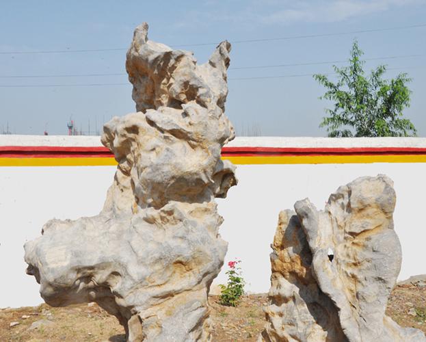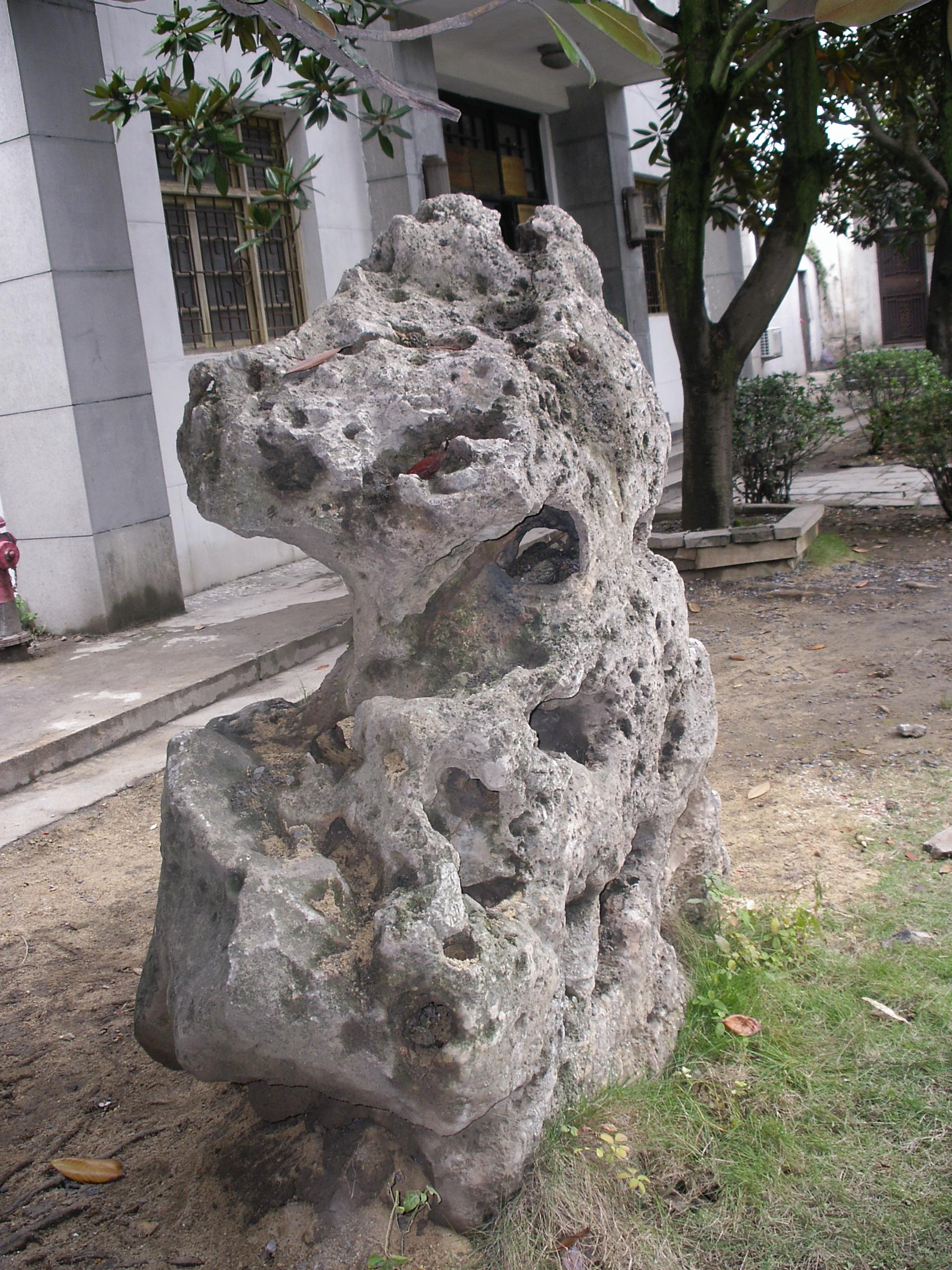 这就是“石丈”?这只是一块怪模怪样,丑的出奇的大石块而已。石高约2米,两人合抱不及,多孔多皱。就这么一块“状奇丑”的普通石峰,却让故事流传了近千年,吸引了许多奇石爱好者前来一睹风采。