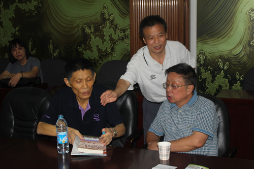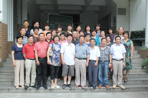 最令我难以忘怀的是,他一直在为使我们这些分散在全国各地甚至世界各个角落的同学离开母校四十年后能够有机会相聚而做的努力。他为了达到这个目的,执著地做了大量的极其艰苦细致的工作。他曾经从西郊的虹桥现住处多次往返当年的老屋搜寻线索。由于我们的原住址都已拆迁,邻居也都搬走了,其中的难度可想而知。但他只要有一点线索,都会不厌其烦地一次又一次地上门核实,偶遇到同学的亲朋好友,也一次又一次地托他们带信。正是在他的不懈努力下,再加上徐胜林、盛梅华、顾雯英、张燕、洪建强等同学的协助,终于把我们三十多位同学从天南海北召集到一起,也才有了今年8月12日全班在中州路母校纪念毕业四十周年的师生聚会。那时,他已经是肝癌晚期了。这意味着他始终是拖着患有绝症的病体来完成这次聚会联络工作的!为此他付出的太多了,他也实在太累了!那天返校时,他走路都已经力不从心了,是在妻、儿的搀护下才来到学校参加聚会。在聚会时,他带着笑容与大家一起拍了他人生的最后一张集体照。