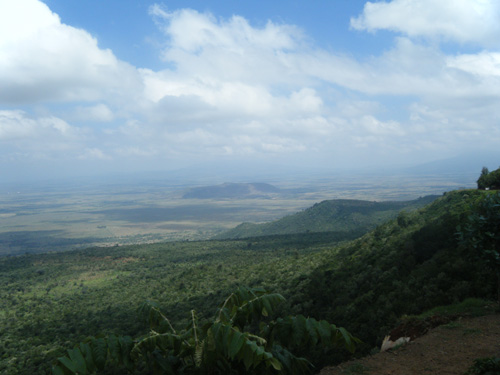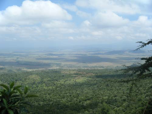 汽车一路前进,在一个停车场稍作休息。纳瑞斯指着山谷下的一片绿地对我们说:“山谷向北延伸,这就是非洲大裂谷。”非洲大裂谷,听说过。一些地质学家认为,若干年之后,东非之角将以非洲大裂谷为界,从非洲脱离出去而成为岛屿。我们有些感叹,自然界的鬼斧神功的力量如此强大。从山崖到山谷落差很大,因为延绵数千里故称大峡谷。这是个神秘的地方,世界上大部份科学家都认定东非大峡谷是人类的起源地。放眼望去,只见裂谷底部长满了绿色植被,坦坦荡荡、林木葱茏、而裂谷两侧山峦起伏,那些热带树木长得很茂盛,很飘逸,生机盎然,树枝上长着许多坚硬的尖刺。
