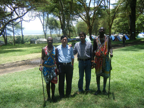 穿过草原,来到了奈瓦沙湖,这是野生动物自然保护的中心区域。我们首先遇到了穿着奇异服饰的马赛人,他们是这里的主人,那又长又大的穿孔耳垂一下子吸引了许多游客。据说,马赛人是目前世界上最贫困、最落后的部落之一,至今仍盛行着一夫多妻制,年轻妇女蓄发编辫,而成年男子却剃着光头。他们顽强坚持着传统的生活方式,以肉乳为食,喜欢喝饮鲜牛血,随身携带一根圆木棍或长矛用于防身。当然,我们遇见的旅游景区的马赛人与原始森林里中的马赛人是有所不同了,应该说是更具有“现代观念”了。