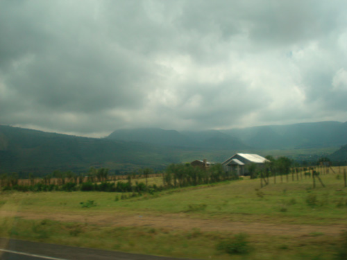 汽车沿着大裂谷走了一段后,便转入一望无际的大草原,草原的春天,充满生机,翠绿的灌木丛散落在平野上。