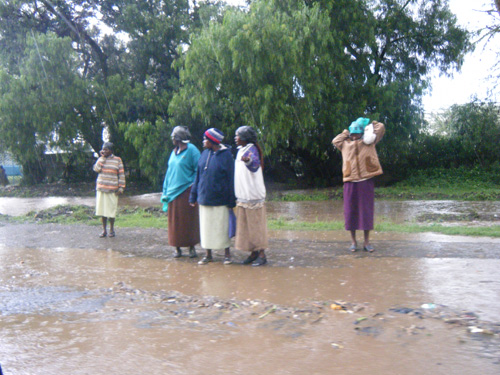 路边,小溪边,一群肯尼亚妇女正等待着,好像是等汽车吧。