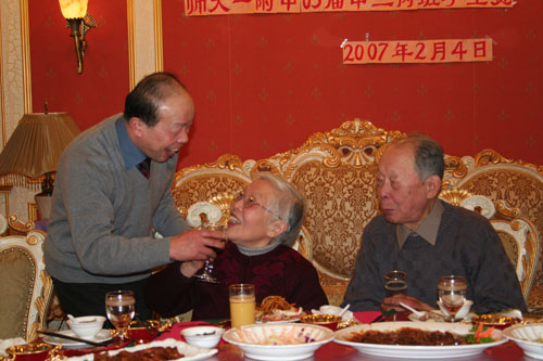 2009年,是龙老师的九十大寿,恰巧又是我们同学六十岁的日子。我们再次相聚,为龙老师祝寿并共同过六十岁生日。