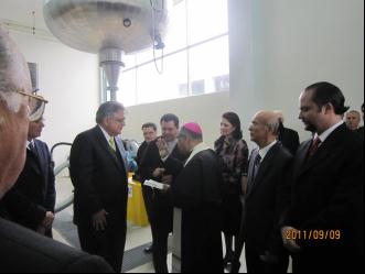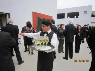 来到工厂,几个卡通人物热情地欢迎我们,竣工典礼是在临时搭建的大棚里举行的。业主拉斐尔将我们一一介绍给了前来与会的主要贵宾们,言语中流露出对中国的赞美,直让人感到有一种事业成就感和自豪感。来宾的级别比较高,至少有三个政府部长:工业部长、卫生部长和环境保护部长。全体来宾四百余人都站在会场内外,三三两两地交谈着,端着国酒和各色点心的侍应生在人群中穿梭。 典礼的议程很简单,重要贵宾致辞、亲朋好友致贺、企业业主致谢,然后就是剪彩,牧师唱起了赞美诗,布洒圣水,预祝企业日后兴旺。我全程陪同工业部长进行参观,看到车间内窗明机洁,设备正常运行,心中不由地对该企业的现场管理喝起彩来。