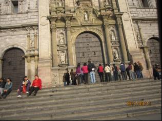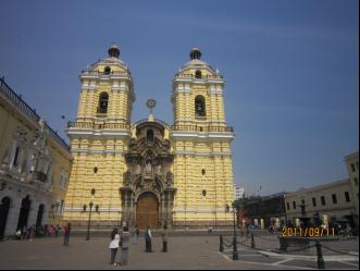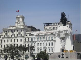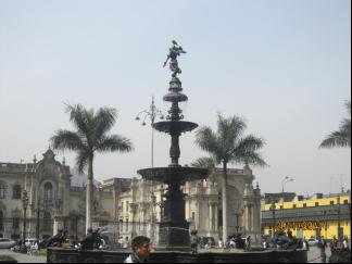 中心广场当年是斗兽场,也曾作为宗教裁判后执行死刑的地方。废除后,1605年在原地建了一个青铜水池,保存至今。利马大教堂建于1625年,具有典型的西班牙巴洛克建筑艺术风格。在大教堂门口,一群信徒自觉地围成一圈在默诵圣经。圣·马丁广场上矗立着在南美洲独立战争中建有奇功的民族英雄圣·马丁将军的骑马雕像。