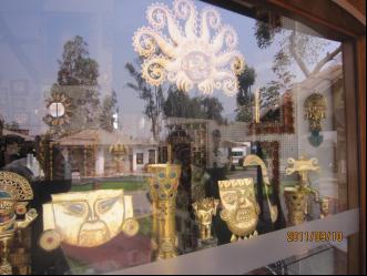 利马的古文物很多,大多属于印第安族全盛时期的遗物。我们还参观了著名的黄金博物馆和武器博物馆。印加文明是与黄金联系在一起的,南美安第斯山脉北部的金矿极为丰富,印加人把金子描述为“太阳的汗”,认为它具有魔力,代表太阳赋予生命的力量。黄金博物馆里珍藏着前印加时代和印加帝国的历代珍宝:精美的帕拉卡斯织物、嵌有宝石的金环、印加金面具、男子的耳饰、印加彩陶俑、乃至统治着活人的木乃伊及王权象征的金柄石斧等。感叹之下,我用了十美元购了一个金柄石斧的仿制工艺品。而武器博物馆里收藏着印第安人和西班牙入侵者,历代使用的各式武器和饰件:刀,枪,矛,匕首,指挥刀,马鞍,马掌,马蹬等。