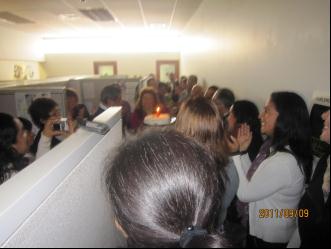 在参加庆典活动之前,我们和INRADNEO公司的技术总监菲利普斯进行了技术洽谈。菲利普斯是个拘谨认真的工程技术人员,他介绍了秘鲁以及南美洲洗衣粉高密度的发展趋势,而我则介绍了非洲及亚洲一些贫困国家对于低密度洗衣粉的需求。双方一致认为当前世界范围内合成洗涤剂的浓缩化和液体化是符合减碳节能发展潮流的,而经济落后地区对廉价的低密度洗衣粉的需求也会持续相当长的一段时期。正当我们在会议室热烈讨论时,从门外传来了一阵阵掌声和歌声,怎么回事?开门一看,只见烛光下,全体科室员工正在为其中一位庆祝生日,吃着送来的生日蛋糕。我不由自主地想着,在国内上班时间庆祝生日,行吗?