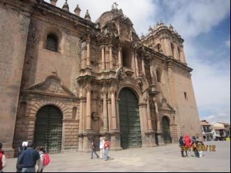 武器广场的北侧是西班牙人用了将近一个世纪修建的一座大教堂,被称为库斯科大教堂。大教堂顶部的钟楼悬挂着一口重达13吨的巨钟,钟声可传遍方圆数十公里。在这里,我又一次见到了由印第安血统的画家所绘制的《最后的晚餐》巨幅油画,这直让我感到惊奇。这是第三次看到《最后的晚餐》了,第一次是1986年在意大利米兰的圣·玛丽亚教堂,那里有一张举世闻名的达芬奇名作《最后的晚餐》,吸引着世界各地的游客,我还买特地买了一张《最后的晚餐》的印刷品。而在利马和库斯科看见的油画显然增加了许多印第安元素。