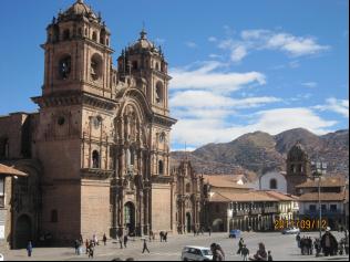 第二天凌晨,我们乘机赴往印加文化的发祥地、著名的印加文化中心、印加帝国的首都——库斯科古城。12世纪后,在秘鲁和玻利维亚边界的大湖——的的喀喀湖,崛起了一个印第安部族——克丘亚人,建立起强大的印加帝国。如今,库斯科城成了秘鲁最大的旅游胜地,被誉为“美洲历史和文明的摇篮”。库斯科城在克丘亚语中有“世界肚脐”的意思,地处安第斯山的峻岭中,气候宜人,海拔高度超过3400米。我们下榻的宾馆里免费提供一种古柯茶,据说可以减轻人们的高原反应。