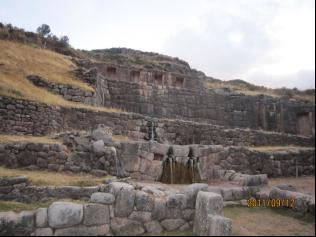 接着,我们来到了印加人的水源地,水源位于海拔4000米以上。从3700米处开始往上攀登,短短的几百米路程,却令人气喘吁吁,显然这是高原氧气稀薄的缘故,坐在车上没有什么感觉,人一活动,马上就觉得四肢无力了。我坚持着向前走,海拔越来越高。终于见到了,一股股清泉从石缝中汩汩流出,汇成一条小溪,奔向远方。说心里话,我至今不明白,这山顶的泉水是哪里来的?难道真是像学生时代《自然地理》教科书中说的那样,是地质构造的毛细管虹吸现象或内部压力吗?
