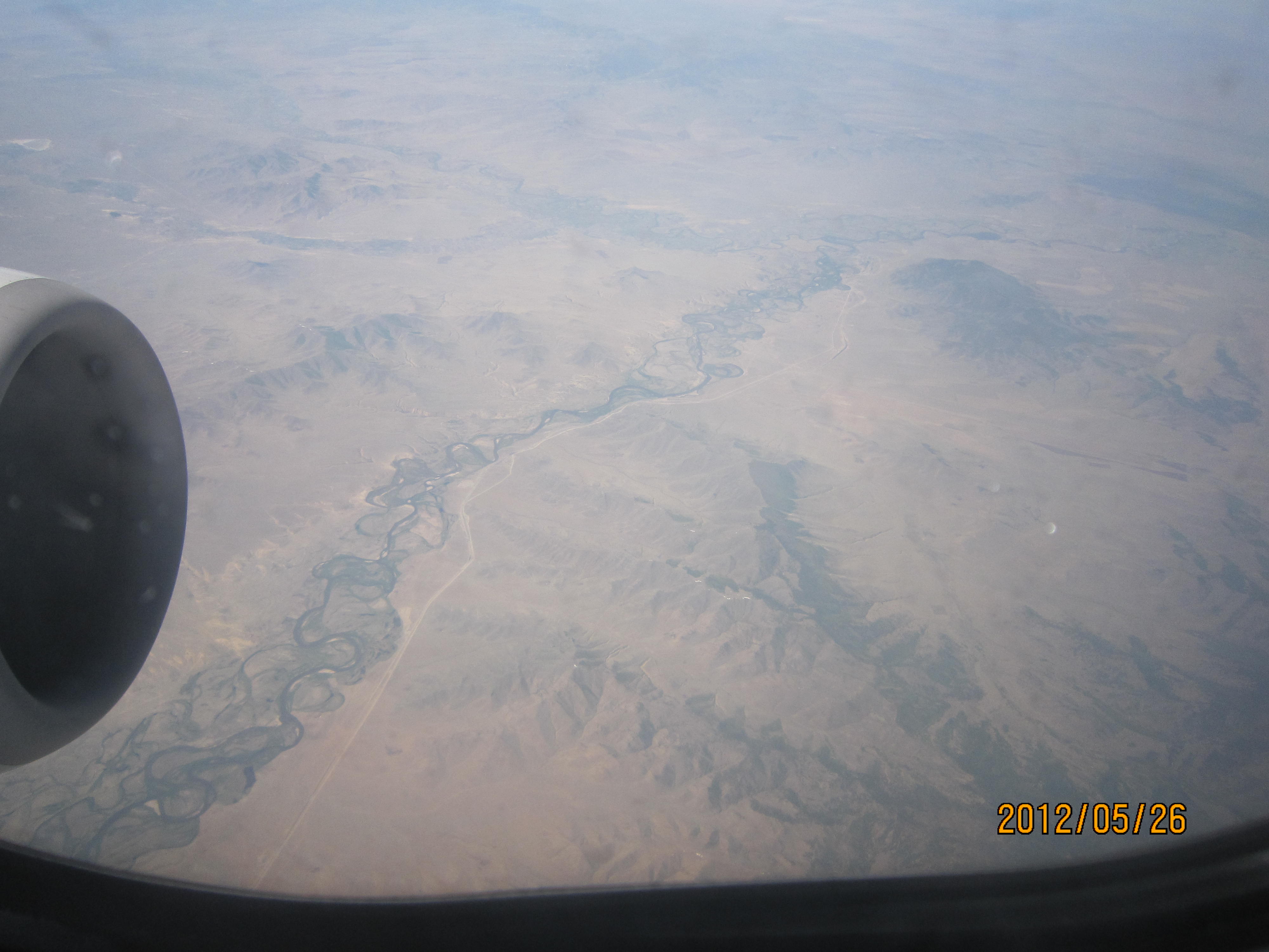 飞机从北京起飞,座位挨着窗舷,朝外望去:天气晴朗,万里无云。越过我国连绵不断的山脉,便是蒙古人民共和国的戈壁沙滩,细细的鄂尔浑河在大地上流淌,从高空望去,好像一条长长的蕾丝花边。难道这就是当年苏武牧羊的地方?正沉思着,忽然,眼前一亮,出现了一座白雪皑皑的雪山,再往前飞,便是一片林海,郁郁葱葱。
