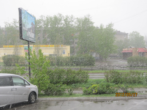我在安加尔斯克仅停留了四天,说也奇怪,居然遇到了雨、雪、阴、晴四种不同的气候。那天,我像往常一样,早上六点多起床。亚历山大要到九点才来,我吃过早餐无事,坐在房间里发呆。忽见窗外飘飘洒洒地落下雪来,并且越来越大,这是五月底的天气啊,让我感到惊奇。在中国,民间传说六月飞雪就有“窦娥冤”了。我痴痴地望着窗外,脑海沉浸在无边际的追忆中,此时此刻,思绪的碎片如大雪纷纷。