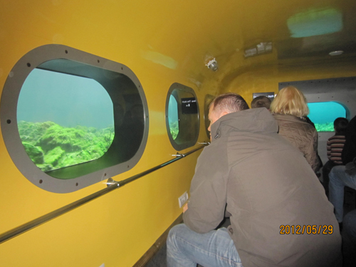 我们首先参观了贝加尔湖博物馆。走进一间船形展室,船内的灯光一灭,游客就像坐在潜水艇里一样,潜水艇演示着“下沉”,两边舷窗外展示出沉入到各种不同深度里的鱼类、藻类等生物的活动状态,这种动态效果,使人感到很新鲜,有一种亲临其境之感。
