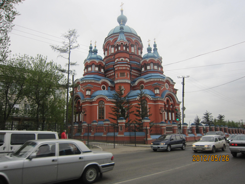 从贝加尔湖返回,途经伊尔库茨克,看到了一个巴洛克建筑风格的教堂,其富丽的装饰,强烈的色彩,使我想起了经常在电视、画报上看到的莫斯科红场南边的最为经典的瓦西里大教堂。