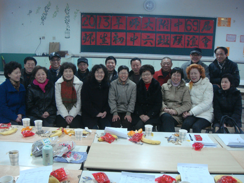 六九届六班同学和班主任王秀珍老师(前右四)的团聚(2013年2月14日)