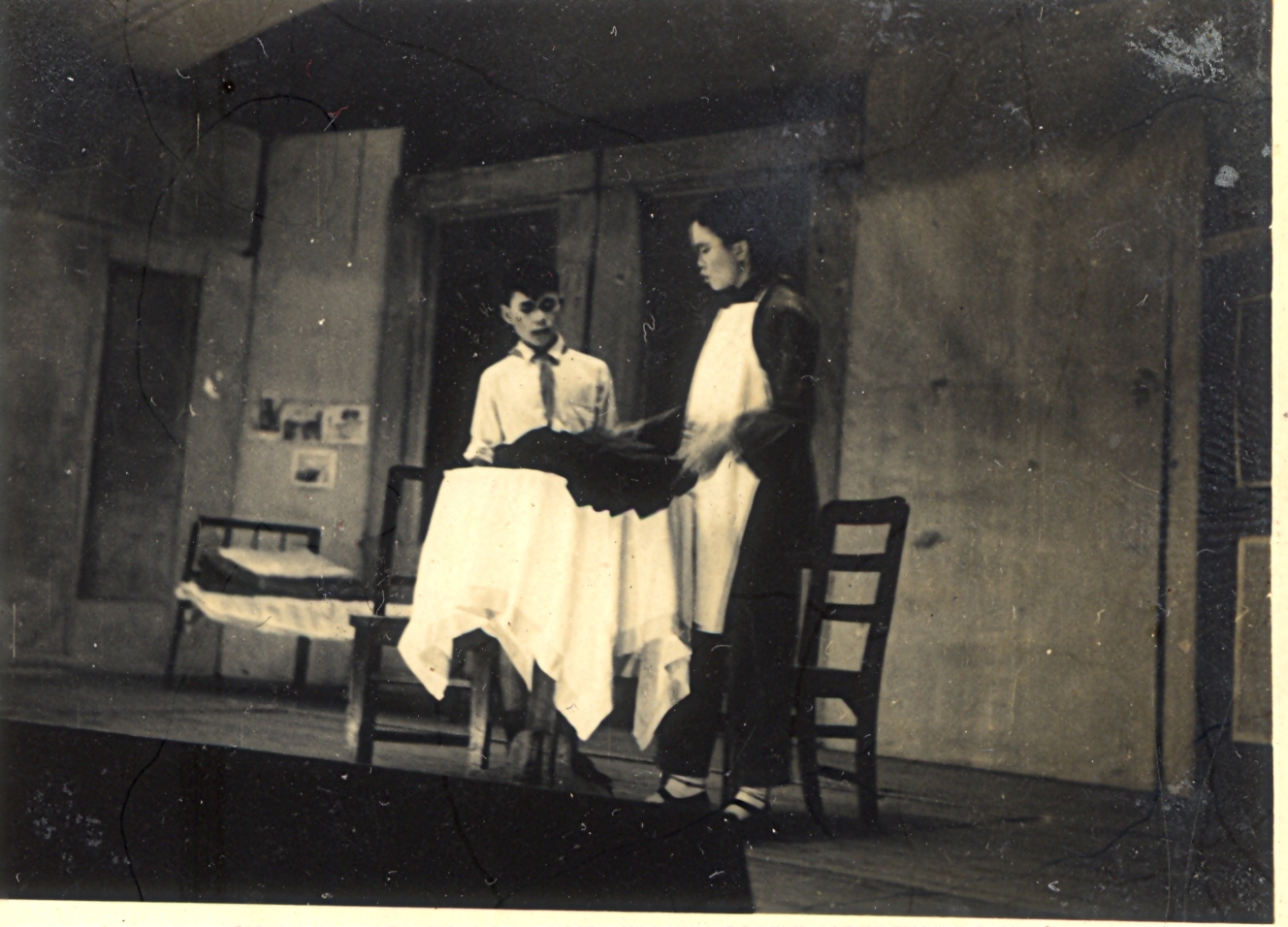 在学校文娱会演时初三乙的节目——话剧《蓉生在家里》剧照
