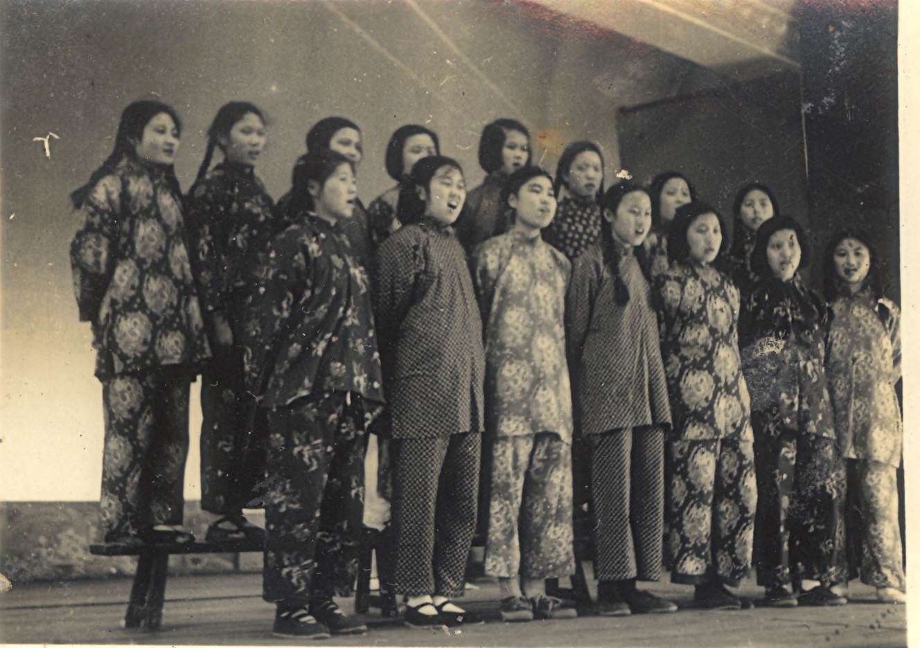 初三乙班参加学校1955年5月第三届文娱会演节目《小车舞》剧照