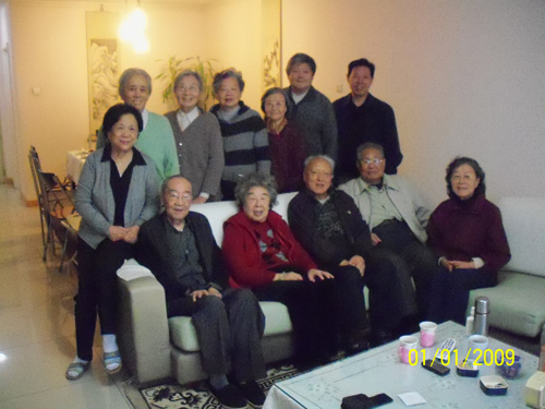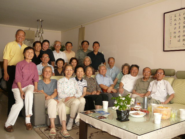 汪颖告诉我,他们在北京的老同学一年要聚会多次,这些同学由于经受了师大附中的良好培养,知识基础扎实,毕业后大部分都进入了重点大学,以后在工作中为国家做出了重要的贡献。有好几位曾担任大学校长,医院院长,研究所所长,例如曾任北京航空学院(现北京航空航天大学)副院长的夏人伟(下图右6)、中国科学院新疆分院院长的滕庭康(下图后立右4)、机械工业部(现机械工业委员会)标准化研究所副所长,总工程师的汪恺(下图后立左2)等,已故的郦家驹先生(下图右2)与汪恺还是亲家呢。他们对能与校友会取得联系都感到非常高兴。