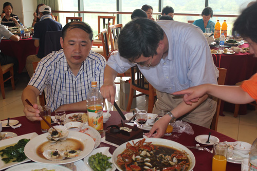 唐家乐老师专程去为这次活动摄影,顺便为同学们捎去近期的校友刊物《华光报》和校庆八十周年时编辑的《附中的骄傲》——没想到在午餐时竟然遇到也是从海宁路二小毕业的他的几个学弟妹们。