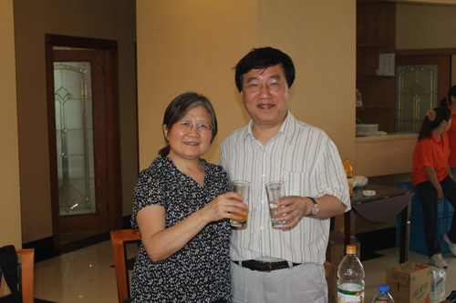 当年教化学的蔡爱莉老师和教数学的吴传发老师也来了,并先后讲话。蔡老师祝大家幸福、健康、十年后再庆贺60岁生日。吴老师除了回忆当年教学中的趣事,还提出“50年后再一起庆贺百岁生日”!