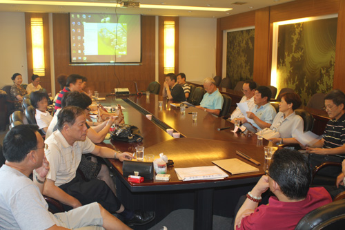 校友会陈步君会长(左二)和陆继椿名誉校长(左一)也参加了会议