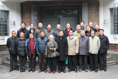 2012年春节校友返校时与老师同学在母校的合影(前右三为水仲芳)