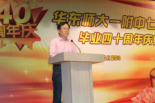 今天,我们成功举行毕业40周年的庆典活动,聚会在附中,我们要感谢各班级的联系人所付出的辛劳,要感谢新华初级中学的领导为我们提供了校园庆典场所,感谢华师大一附中的领导为我们的庆典活动提供了方便。