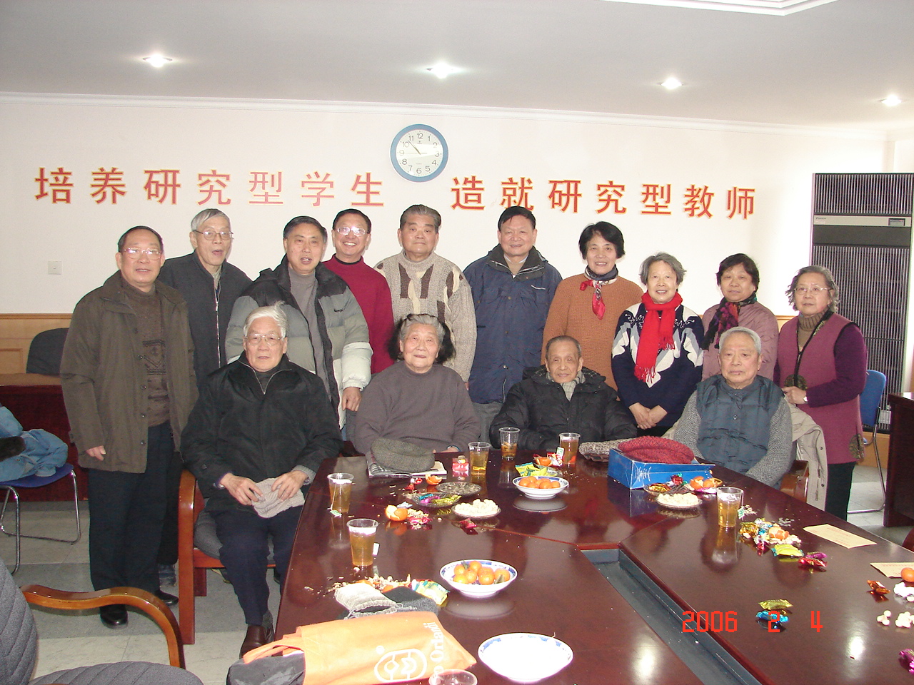 王起柳老师(左二)和当年附中老同事的合影