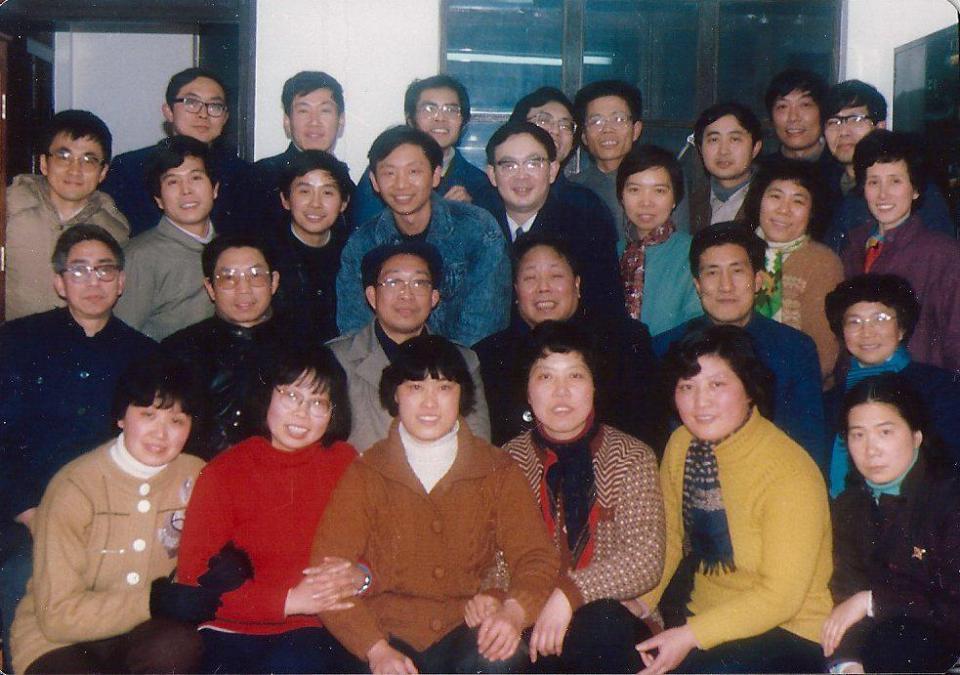 杨比坤(前排中)与同学在1987年1月为周忠昌同学赴日本送行时合影