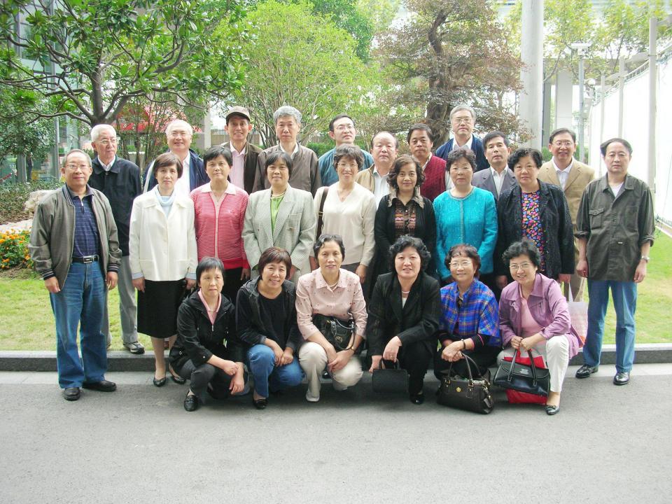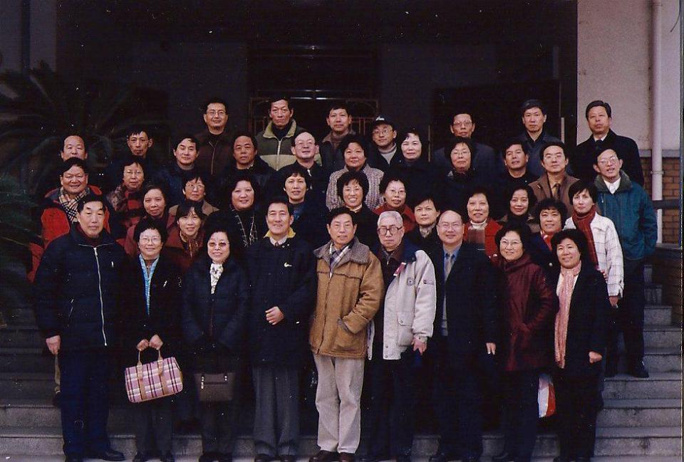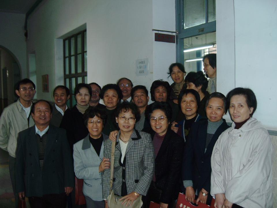 2005年校庆80周年与同学在老教室门口(杨比坤位于前排右一)