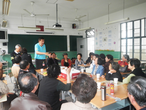 饭后,在李津的安排下,我们回到了中州路母校旧址,回到我们当初的教室。青春往事一一浮现在眼前。当汪大详捧出有“团圆”字样的大蛋糕时,聚会更是进入了高潮。在此,借用同学在微信上的两句话:“重洋难阻团聚心,时空不断同窗情!”