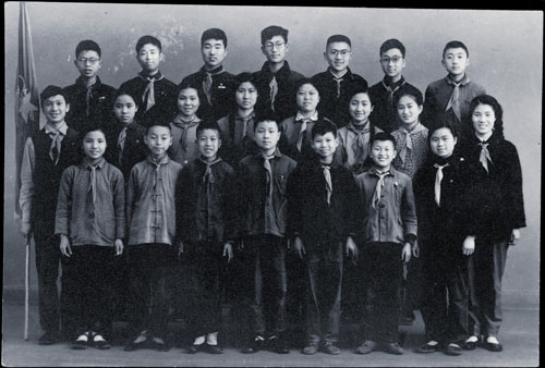 林老师(中排右一)珍藏了半个世纪的与大队委员们合影照片