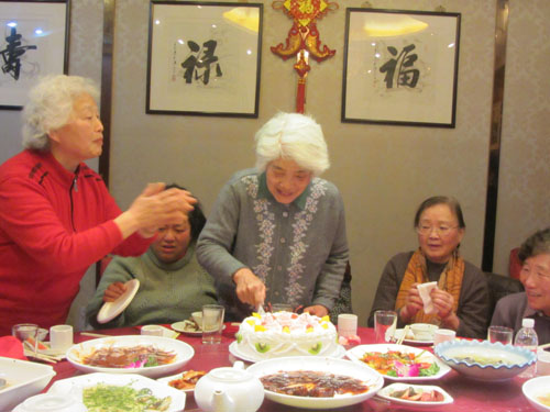 林老师热情洋溢的讲话,感染了到会的每一个人,林老师和年轻时一样说话铿锵有力,充满激情,大家为林老师的健康和永葆青春而高兴。在大家的祝福声中,林老师高兴地切开生日蛋糕与同学们分享。