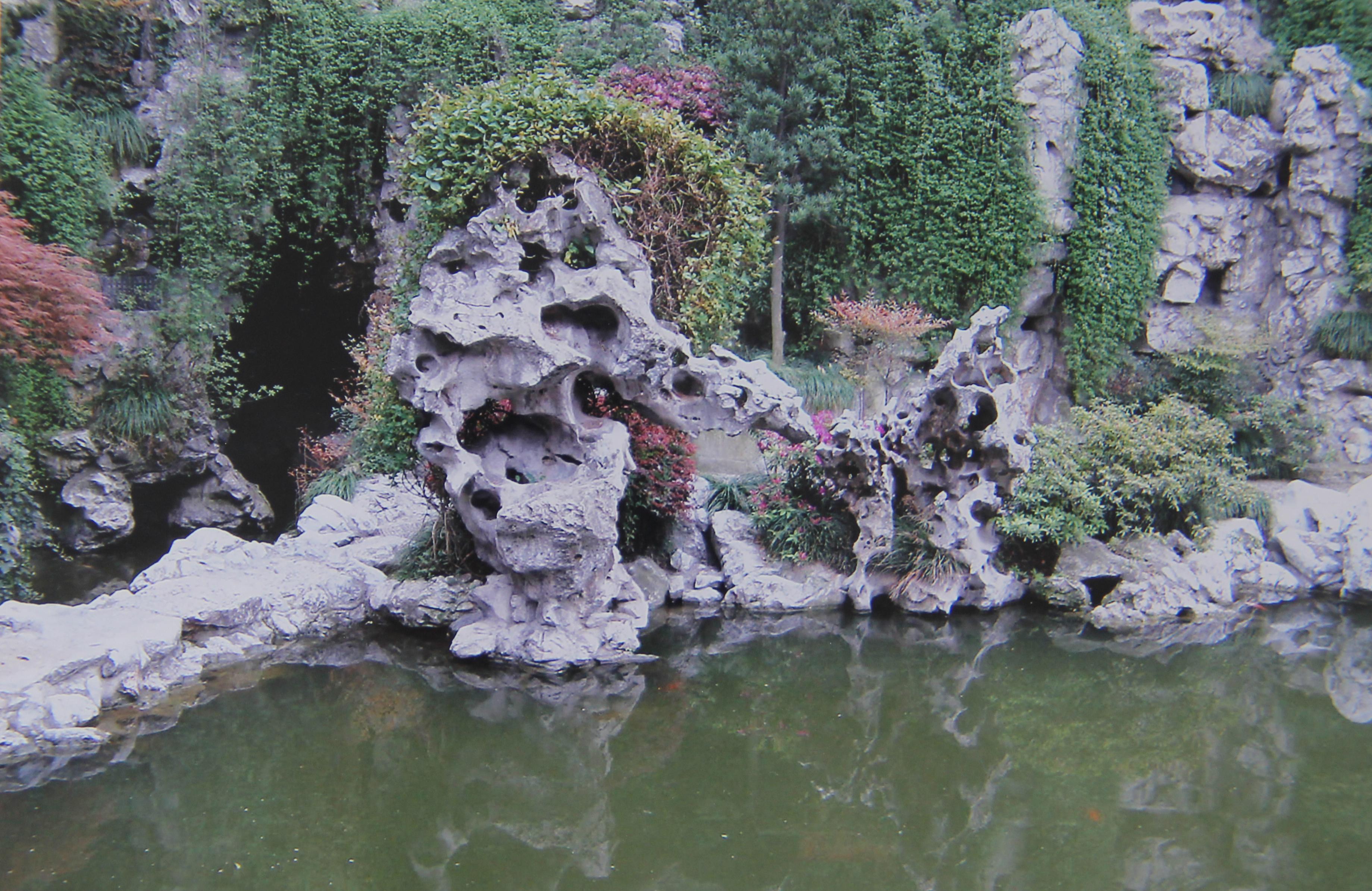 到上海探亲,也不止一次去豫园,玉玲珑当然是多次见到过了,原来玉玲珑石峰花草坛的前面是平地,后来修建为水池,倒影成趣,景色更为秀丽。