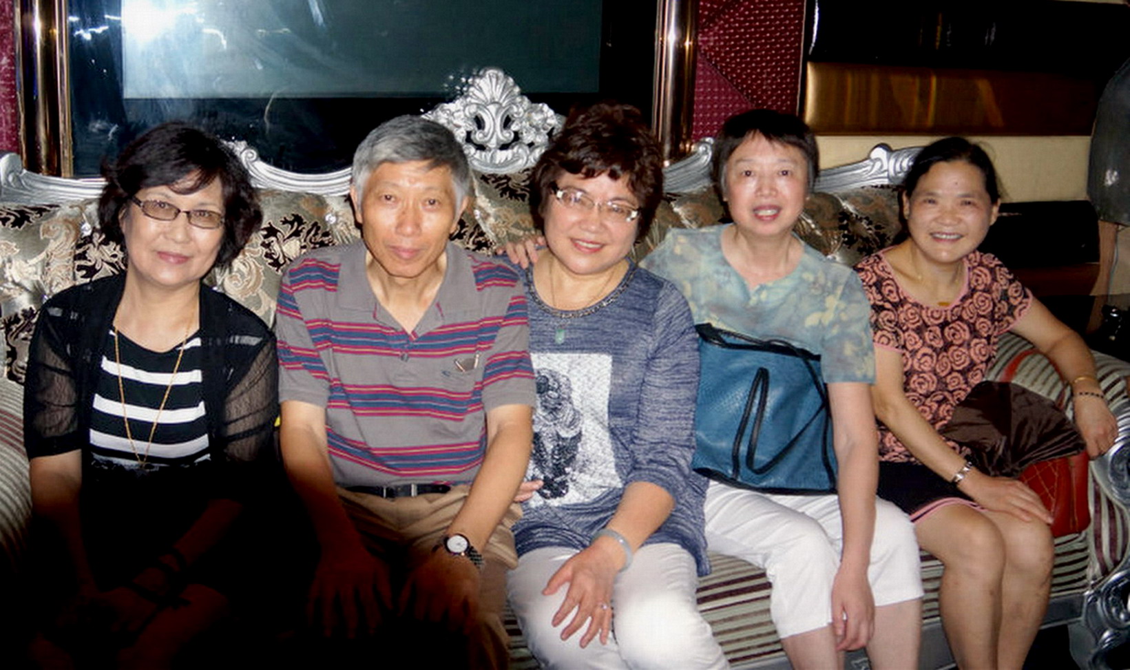 激动的心情还没平复,我又握起边上鲍宜国老师的手向他问好,鲍老师用他一贯的富有磁性的男中音说:“谢幼丽,我记得,你是个好孩子、好同学。” 我又一惊,记得当年我很少受表扬,为何五十年后的今天老班主任要表扬我?“当年你们几个外区来的女同学住在同一个宿舍,有一次与×××闹矛盾我来调解,是你仗义执言站出来为她解释澄清,帮我做了工作,你是个好孩子。”真有这回事吗?我是一点印象也没有了,五十年了,这么一件小事鲍老师居然还记得,而且还记得这么清楚!望着两位老班主任亲切的笑脸,花白的头发,我真是百感交集,热泪盈眶。他们是真正的园丁,他们是用自己的心血浇灌着每一个学生,能遇上这样的好老师,是我一生的幸运!