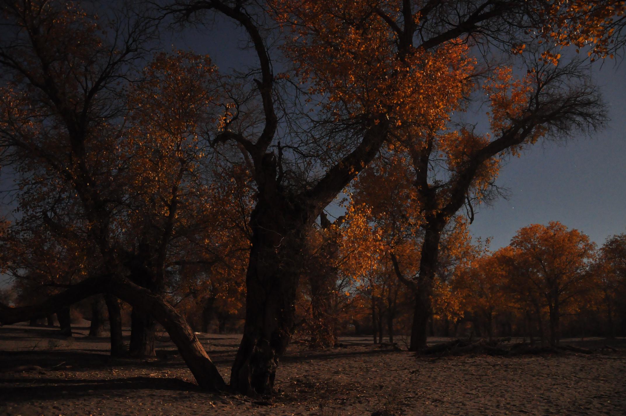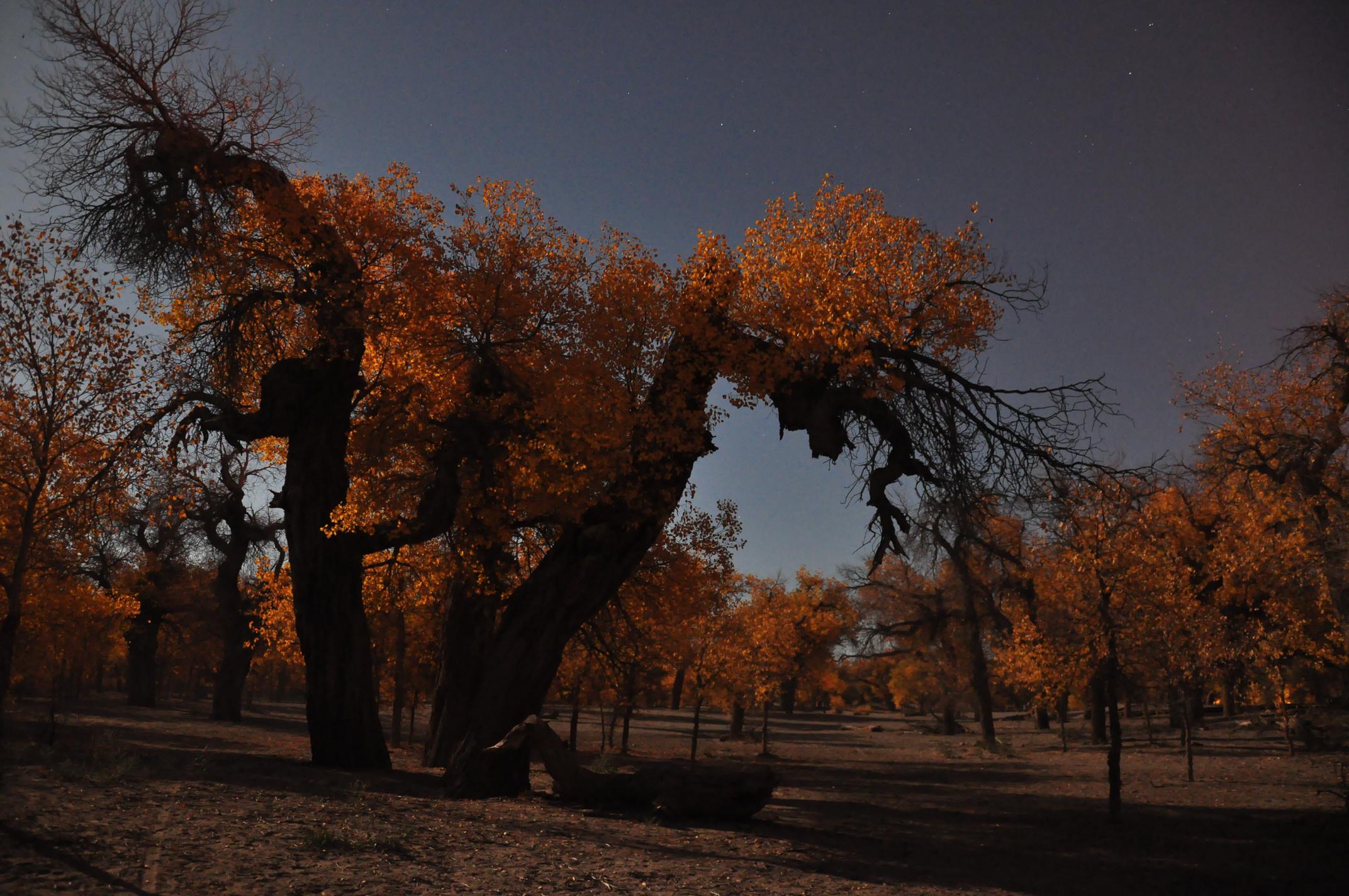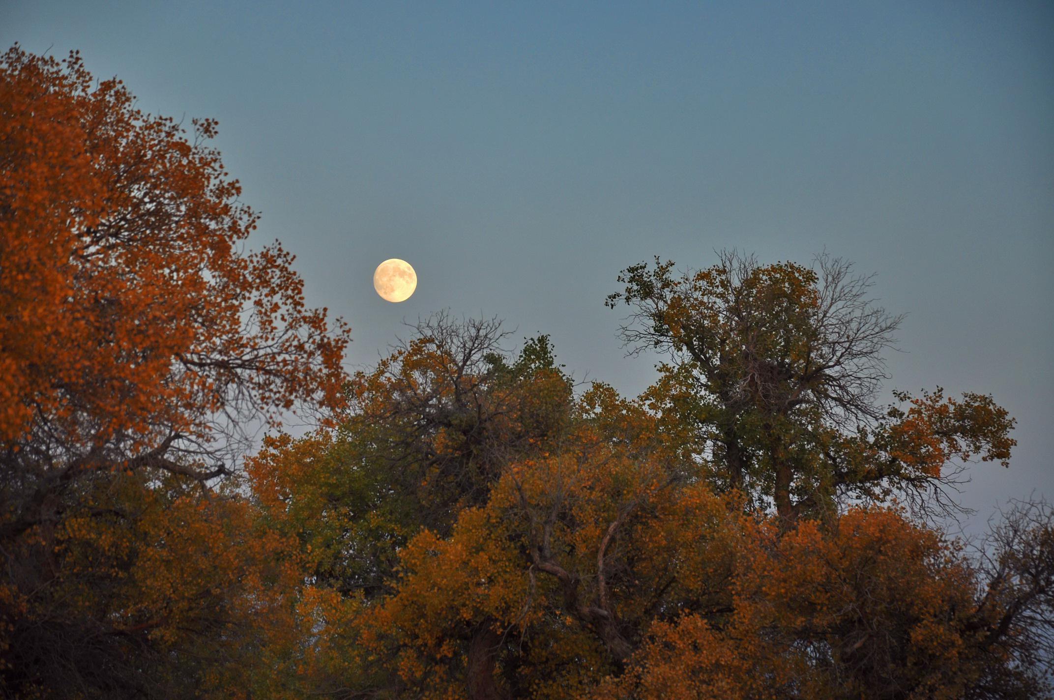 观赏金色的胡杨林和美丽的月全食