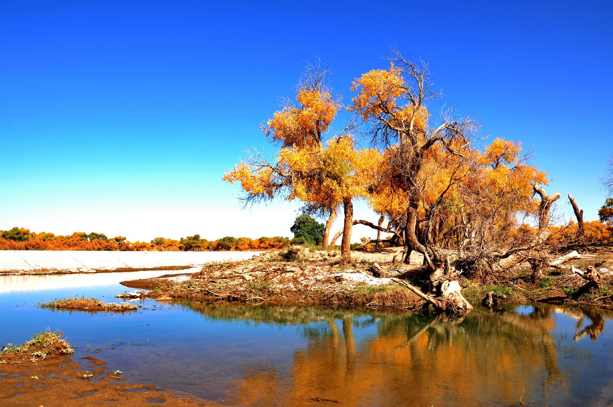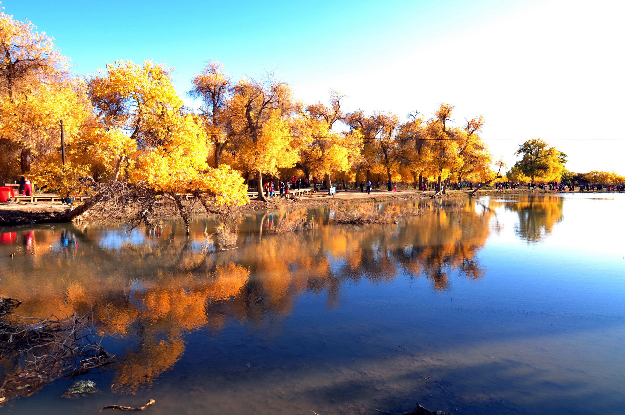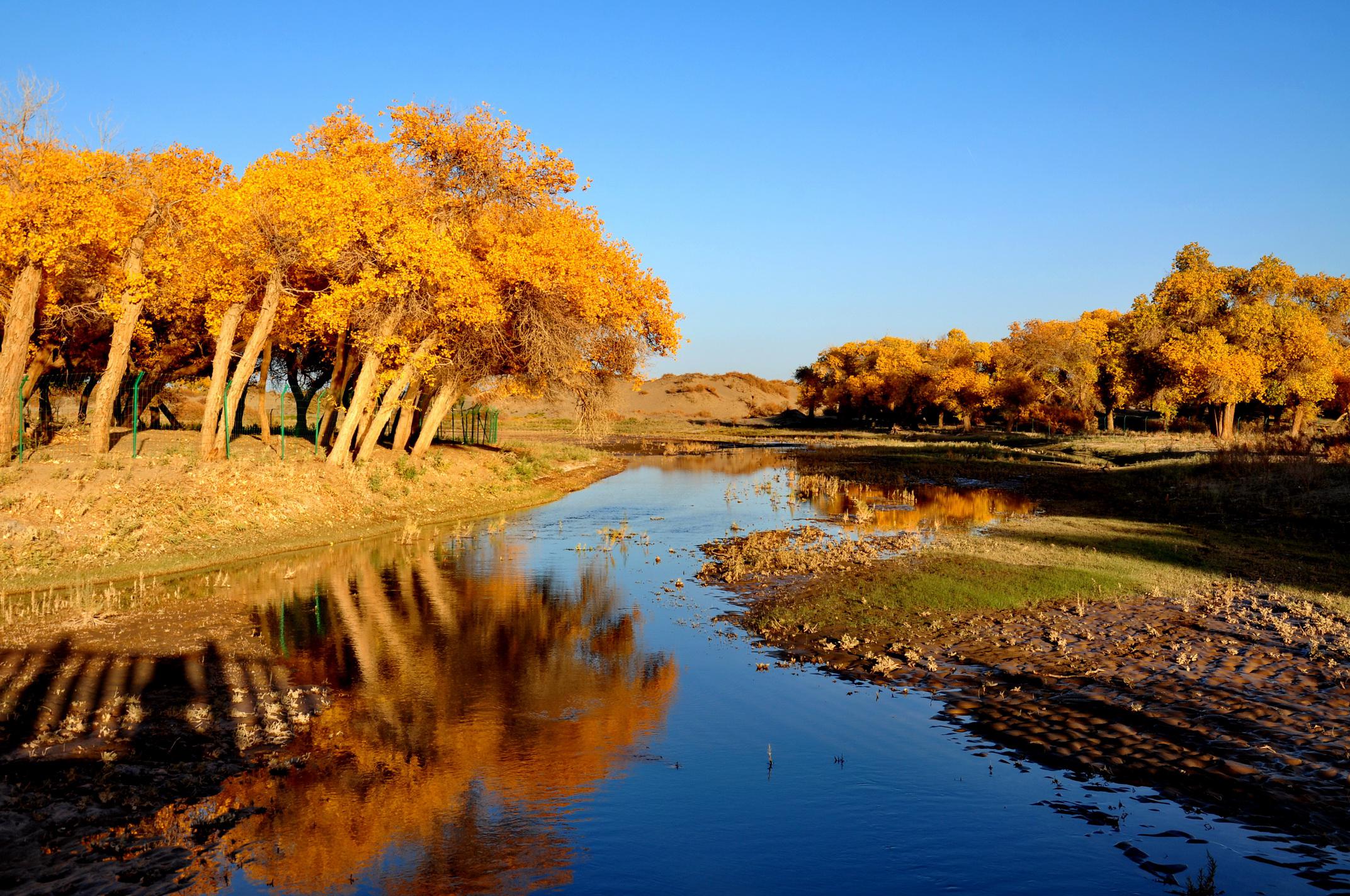 观赏金色的胡杨林和美丽的月全食