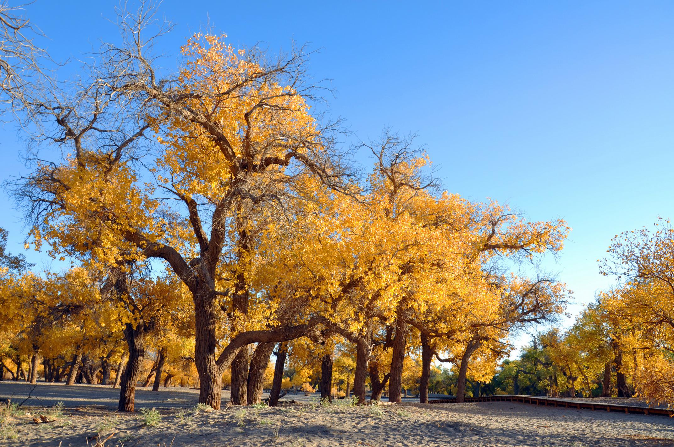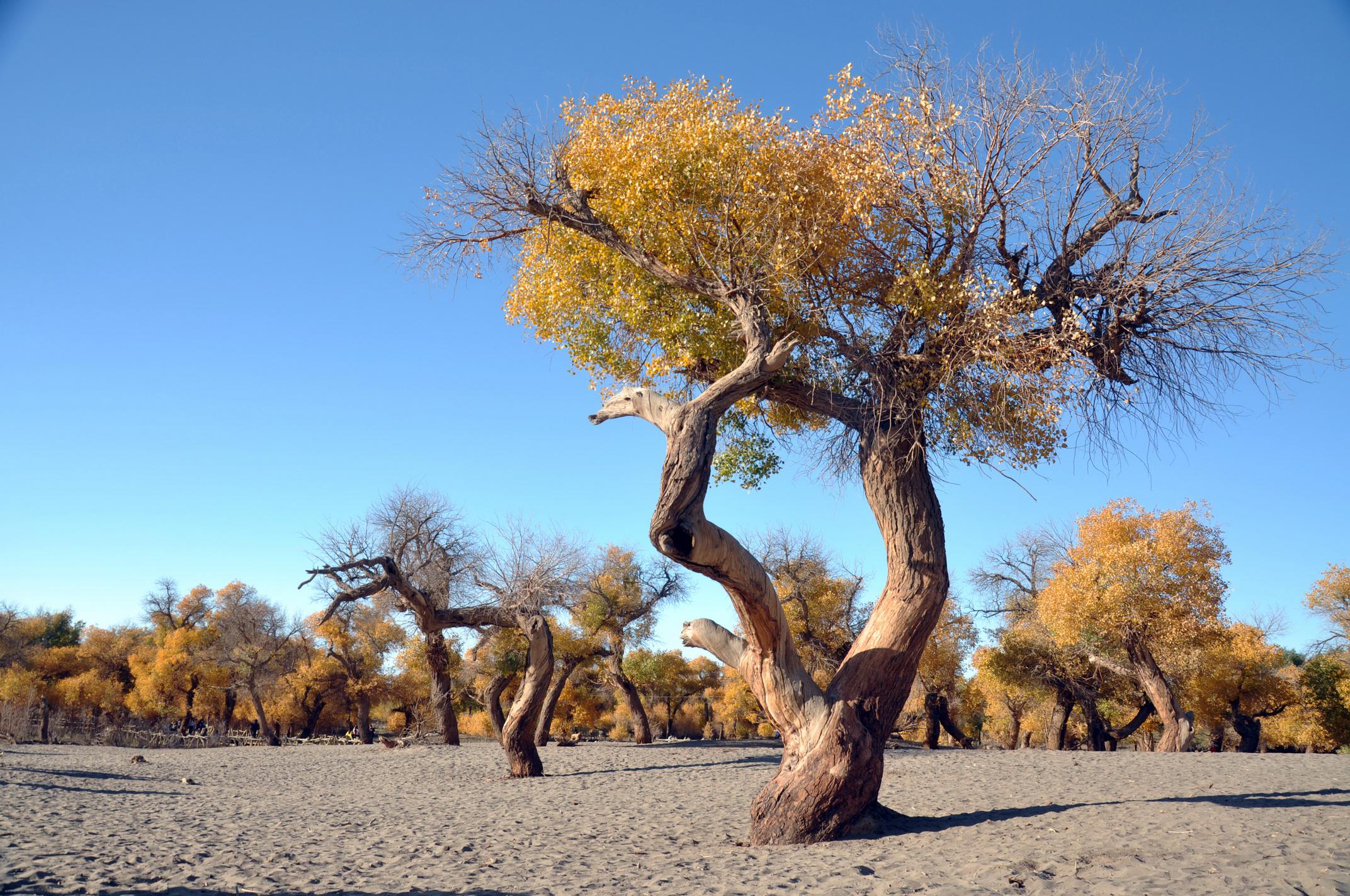 今年10月,我去内蒙古额济纳国家级自然保护区看胡杨林。在戈壁荒原经过六小时长途后,当你看到沙海中的胡杨林,那有多么的美啊!现将我拍摄的照片发给大家,让你们分享我的惊喜。(图1、图2、图3、图4)