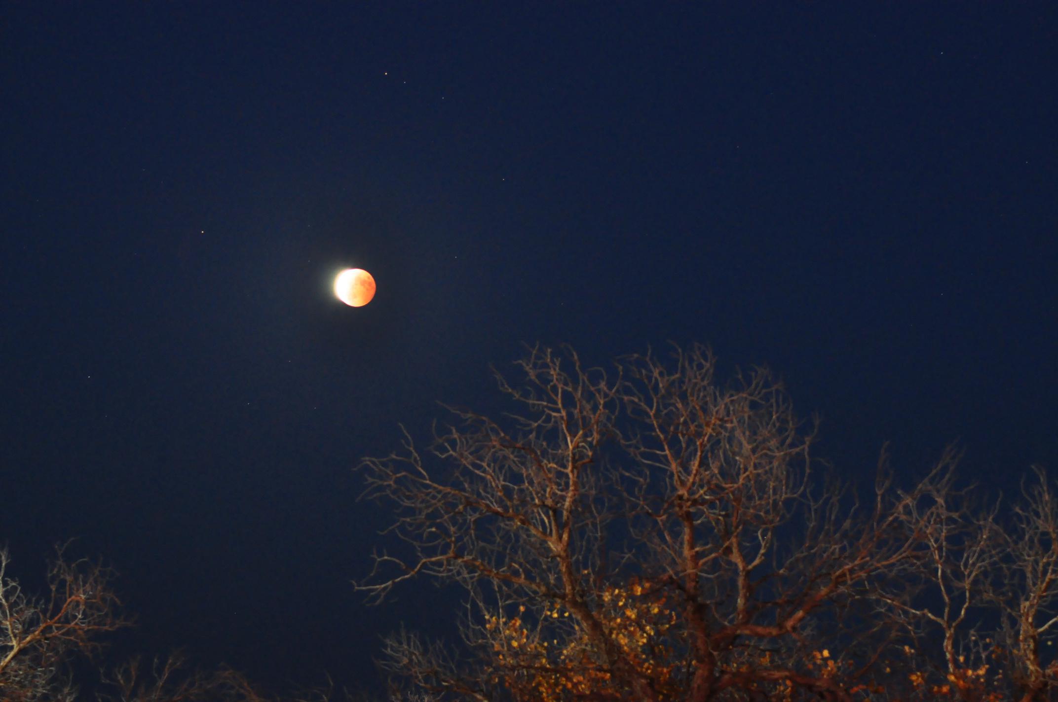 图12 DSC_0148.JPG 红月亮右上侧星点是天王星 (10月8日19:40摄)