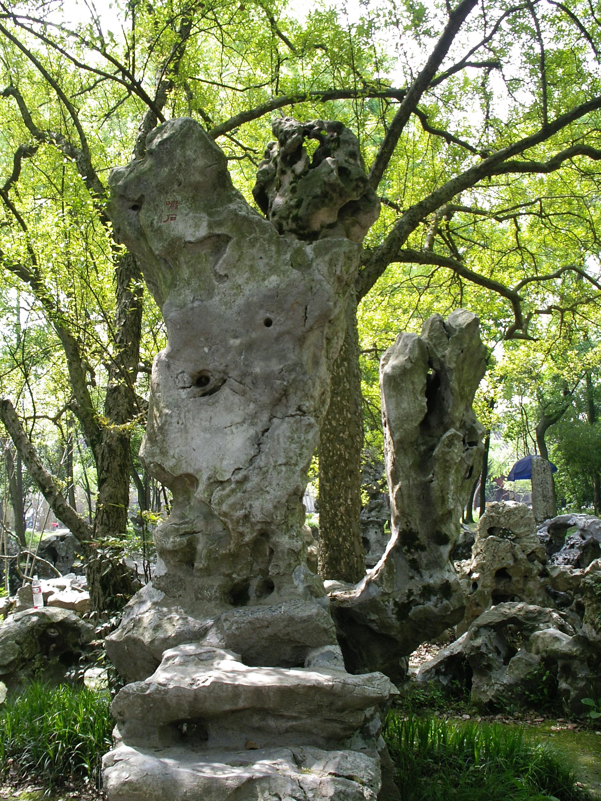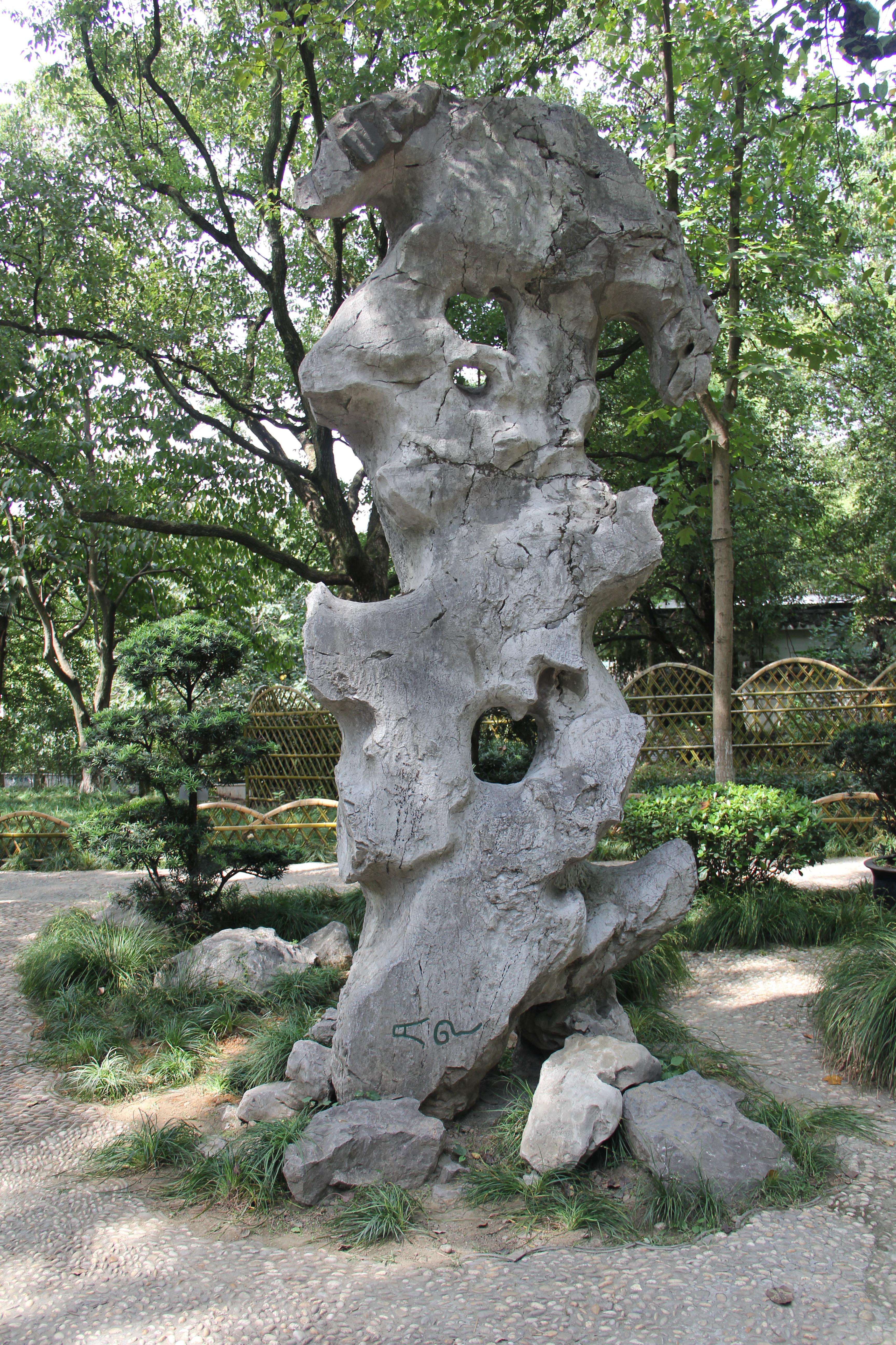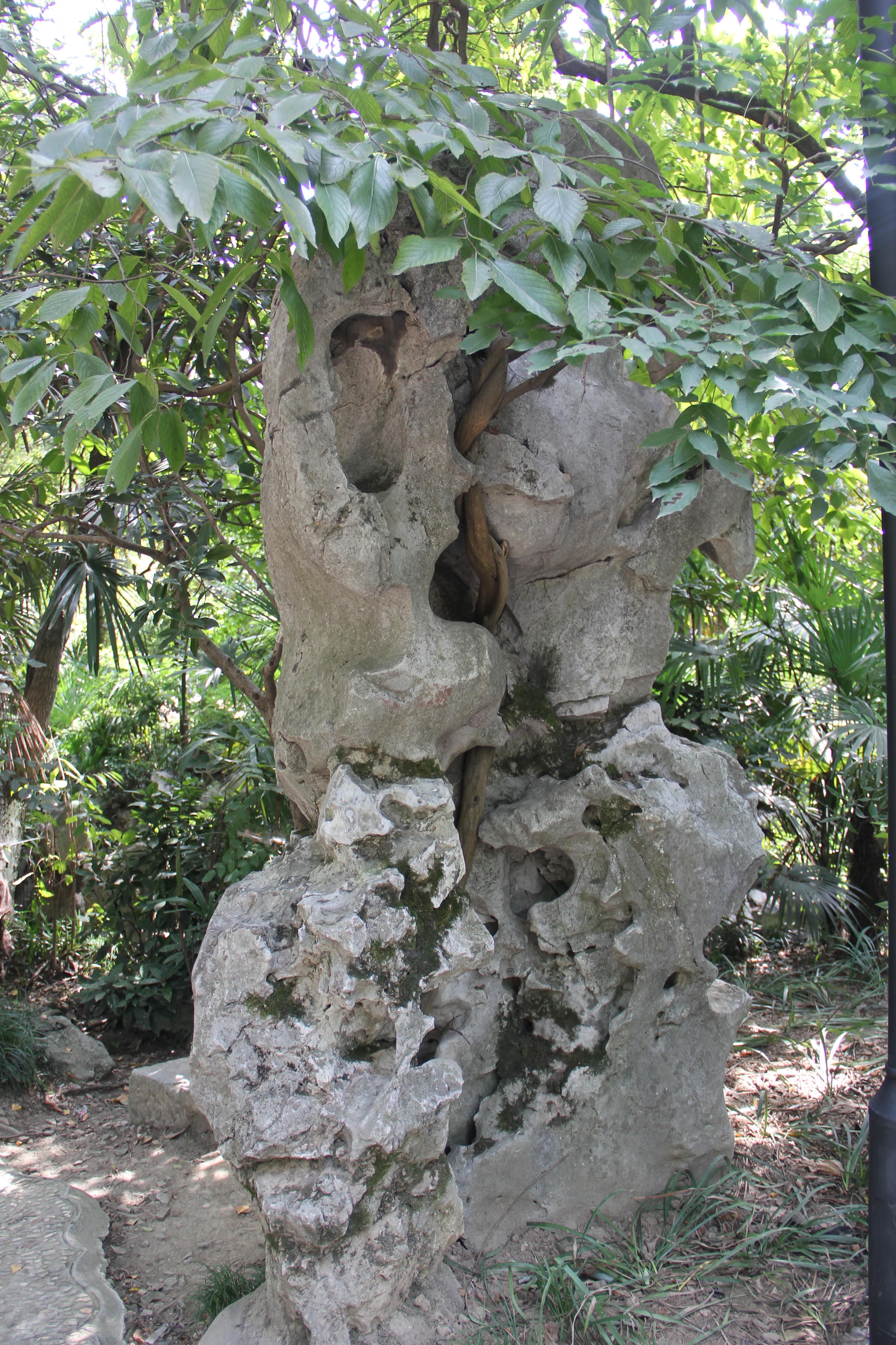 回到杭州,将胶卷冲成照片。一张张看下来,觉得这块多面神石还真有些神奇。凡园林景观石,可四面观赏者,可称为极品,可三面观赏者,可称为上品,可二面观赏者,可称为中品,仅可一面观赏者,称之为平品。然而这座多面神石,从正面看恰似一位叱吒风云的将军,从背后看又如那摇着蒲扇的济公和尚,而从两侧看既像是窈窕浣纱女又像是下凡观音。真可算是一座极品太湖石了。
