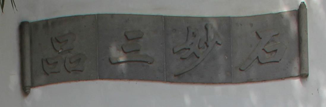 雕像上方有《石妙三品》四字,关于《石妙三品》四字的含义,有一些不同的说法。一位导游在介绍:三品是指太湖石、黄竹和赵孟頫的小眼睛。这种说法有点离谱。