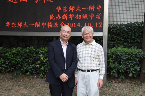 作者(左)和陈步君老师在毕业五十周年庆典活动时合影