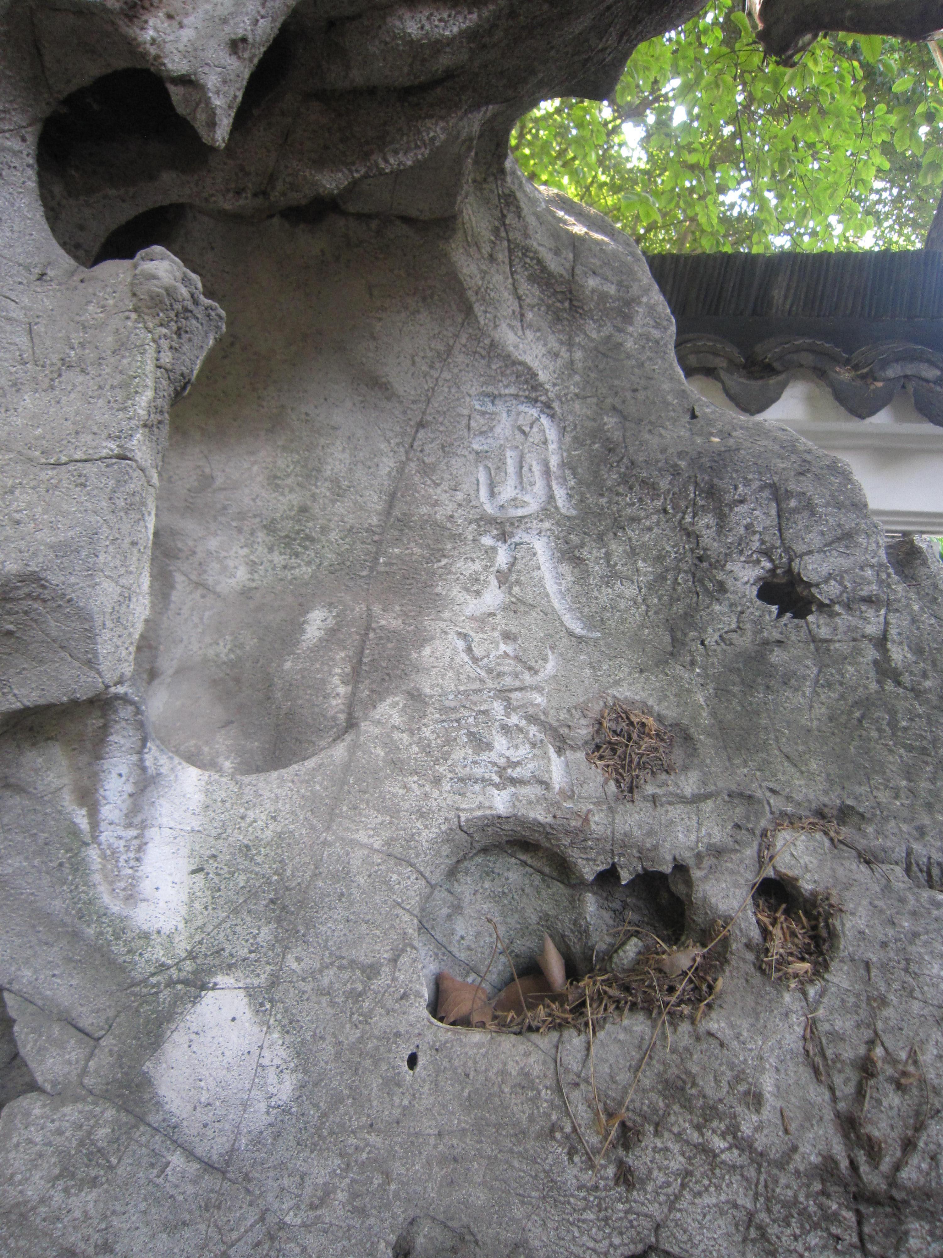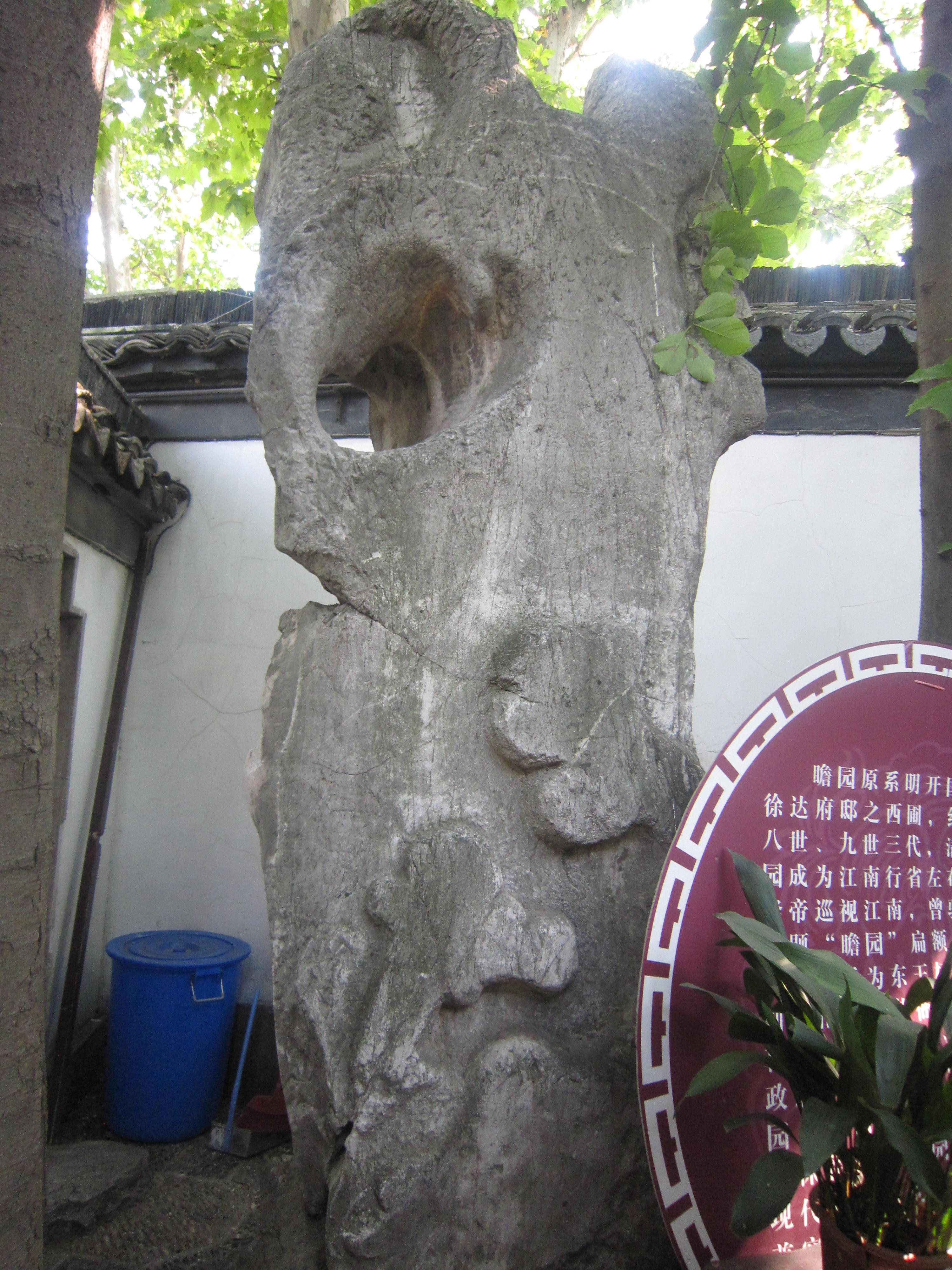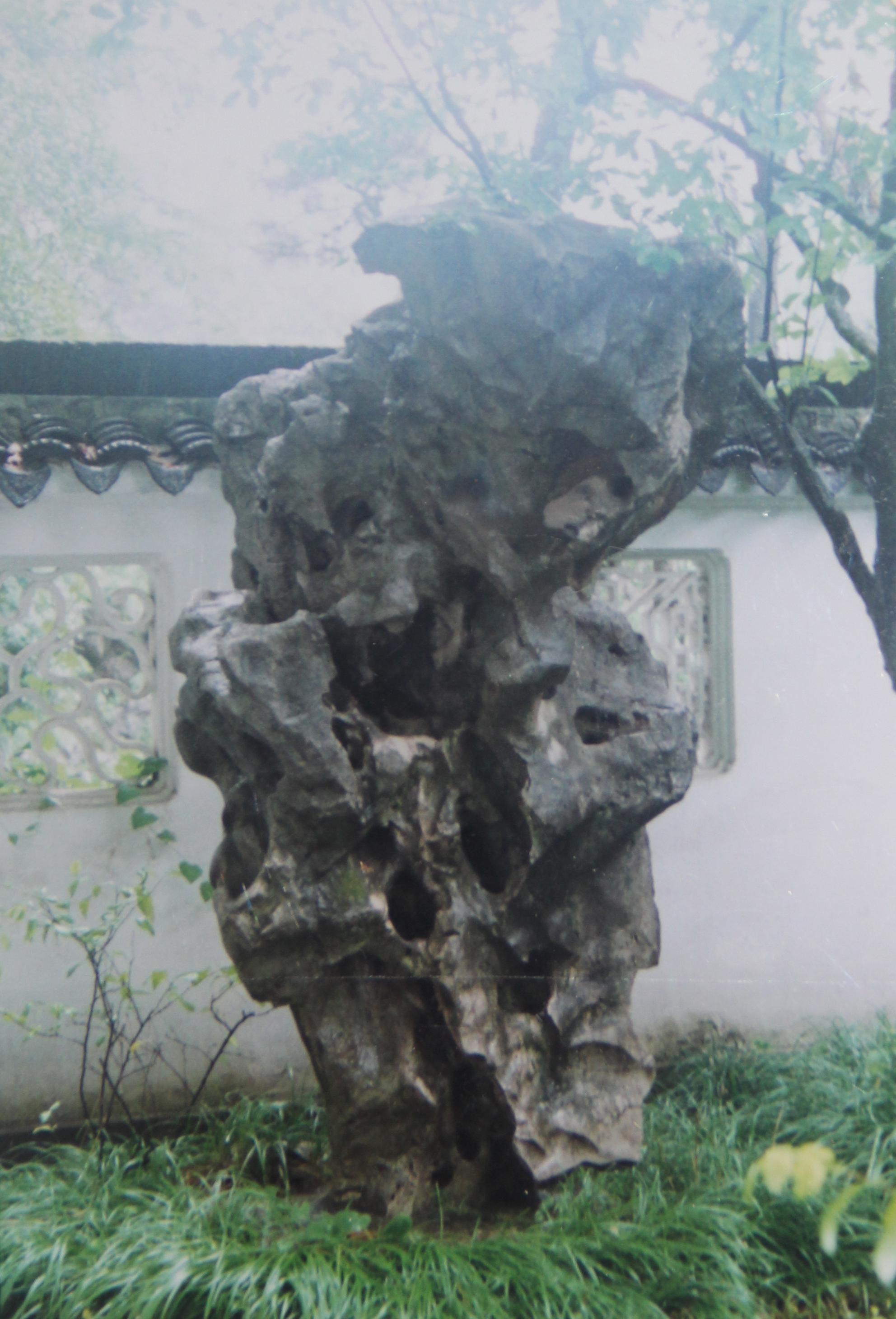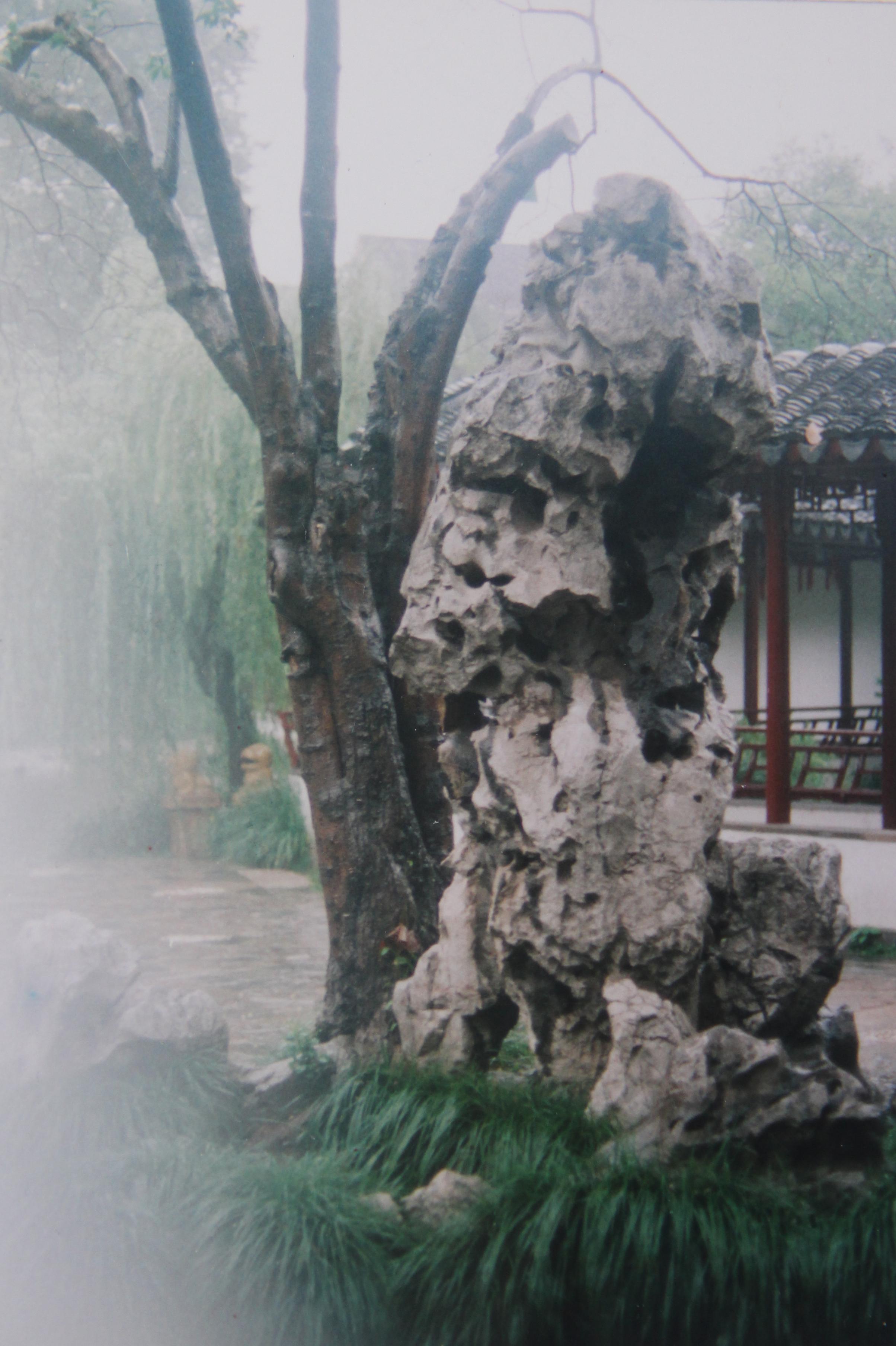 既然海棠院的洞门依然紧锁着,我只得退出瞻园,顺着园墙外的马路,来到了那家将海棠院关进在内的茶社,径自走到了“仙人峰”和“招鹤峰”身旁,谁知却给我带来了“颇有疮痍”的感觉。