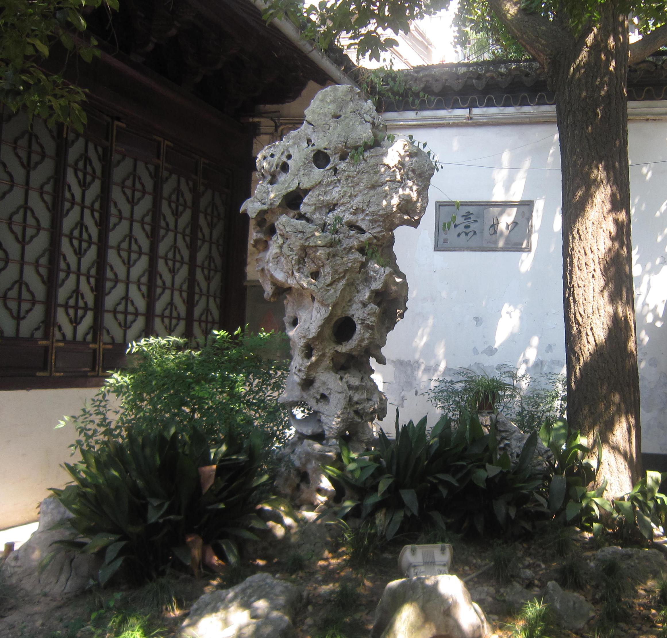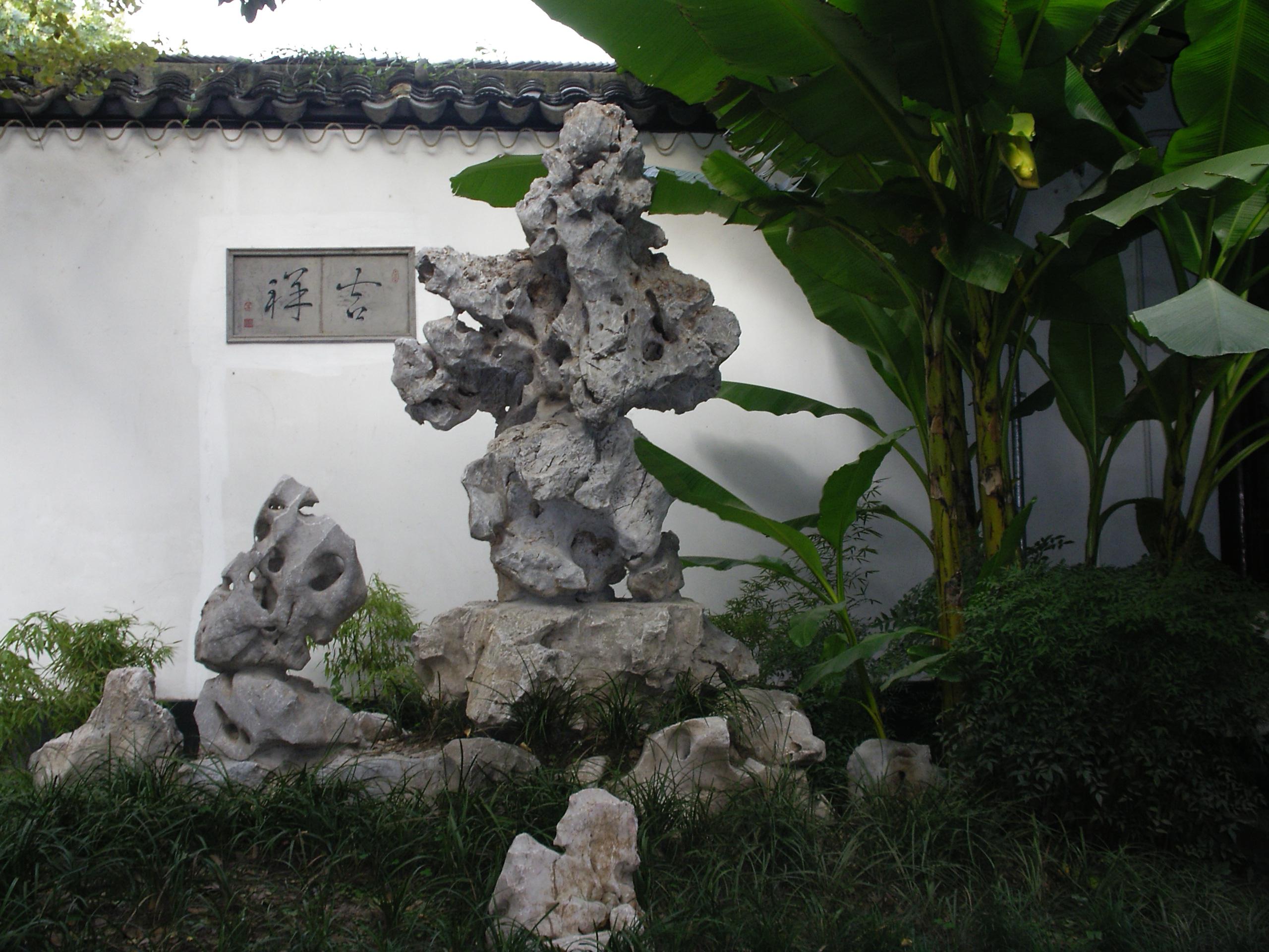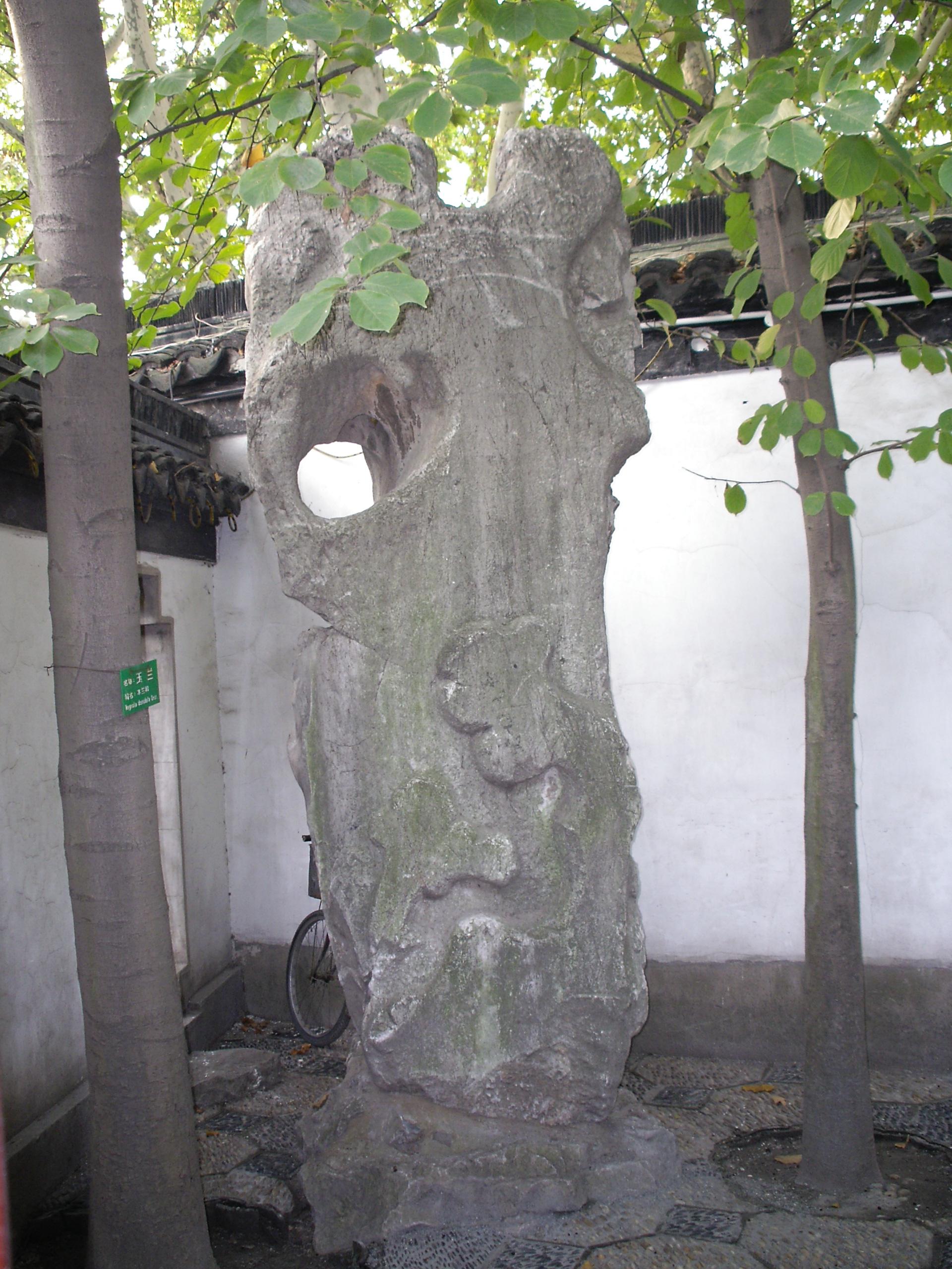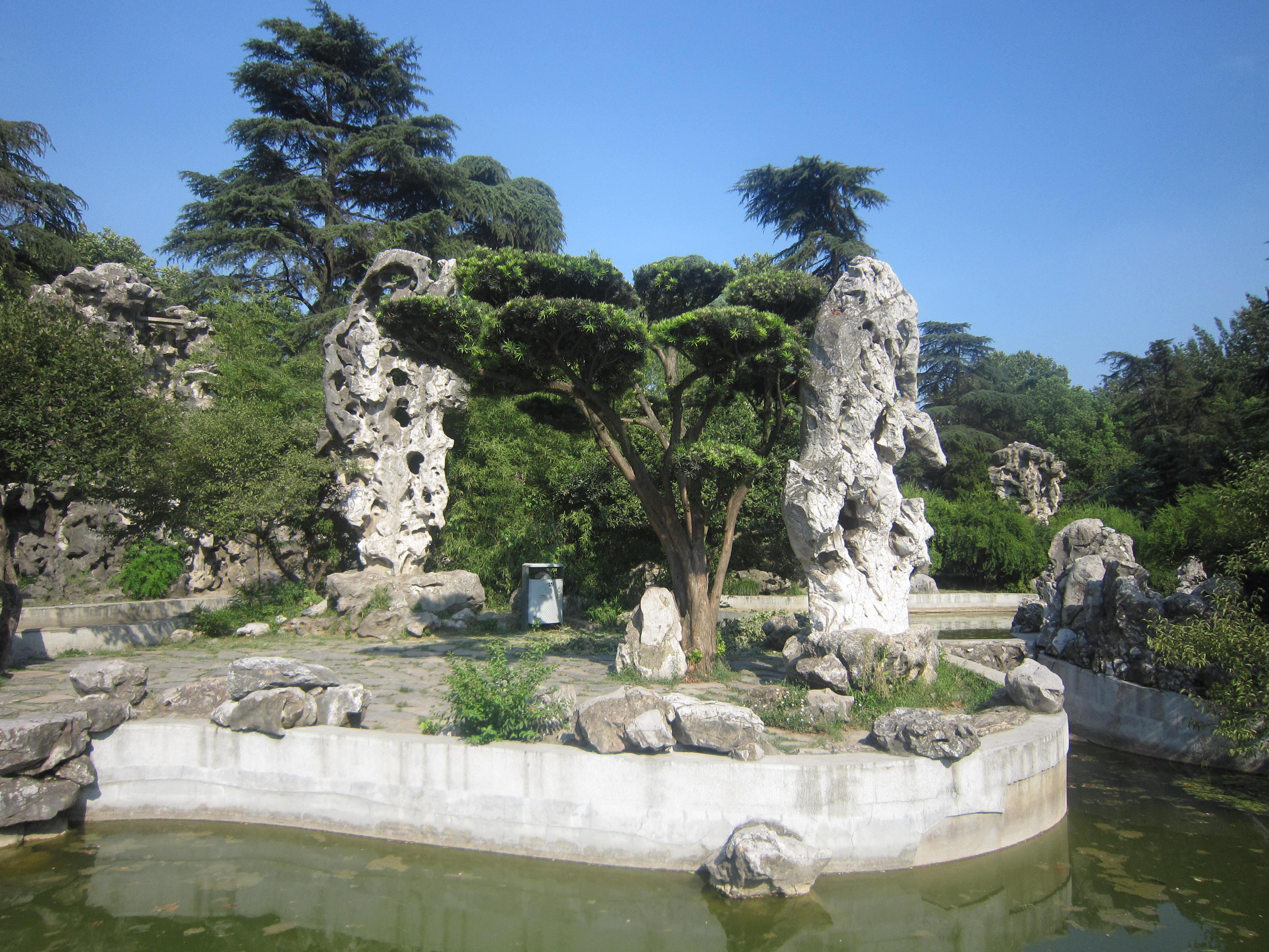 既然海棠院的洞门依然紧锁着,我只得退出瞻园,顺着园墙外的马路,来到了那家将海棠院关进在内的茶社,径自走到了“仙人峰”和“招鹤峰”身旁,谁知却给我带来了“颇有疮痍”的感觉。
