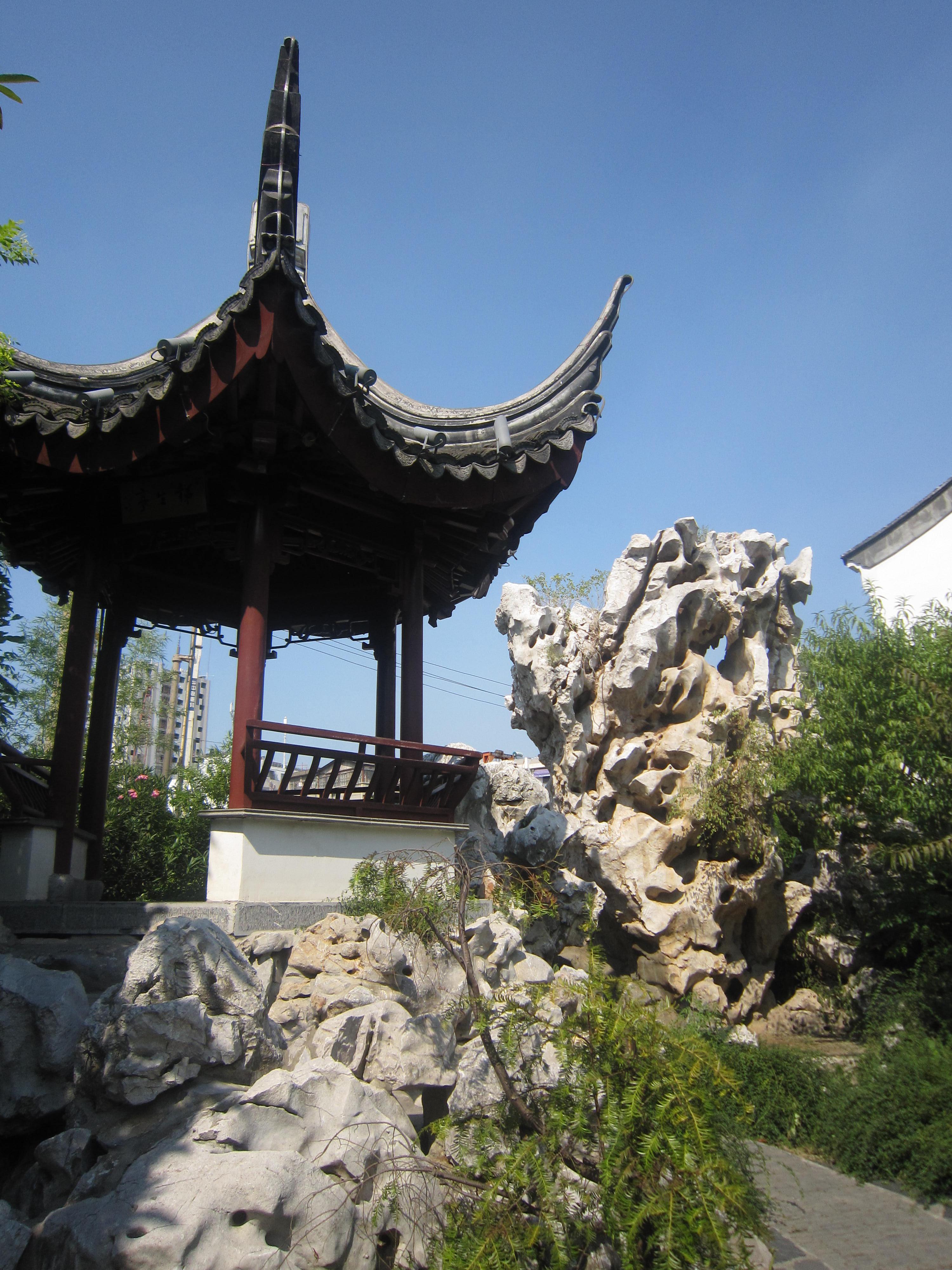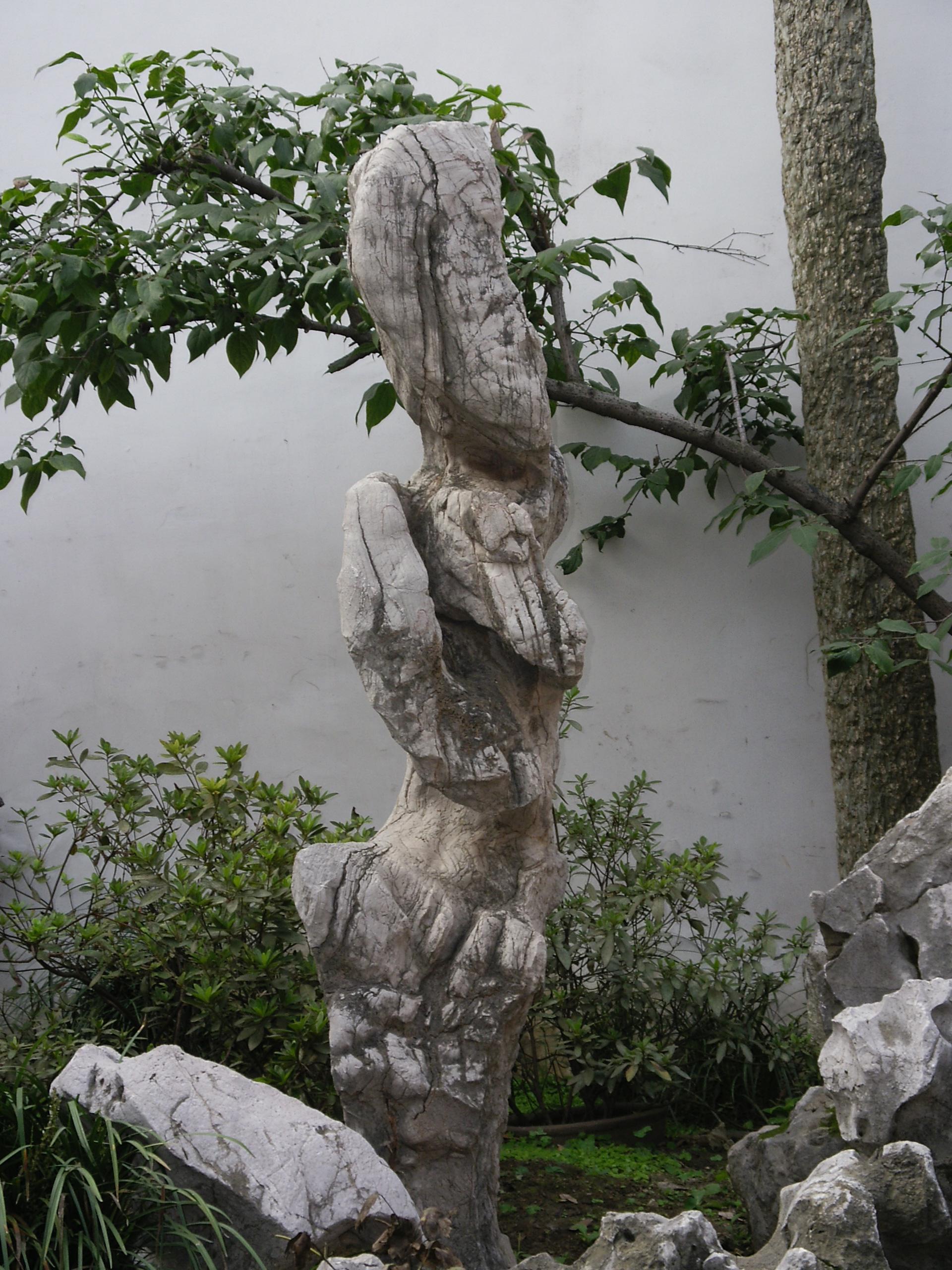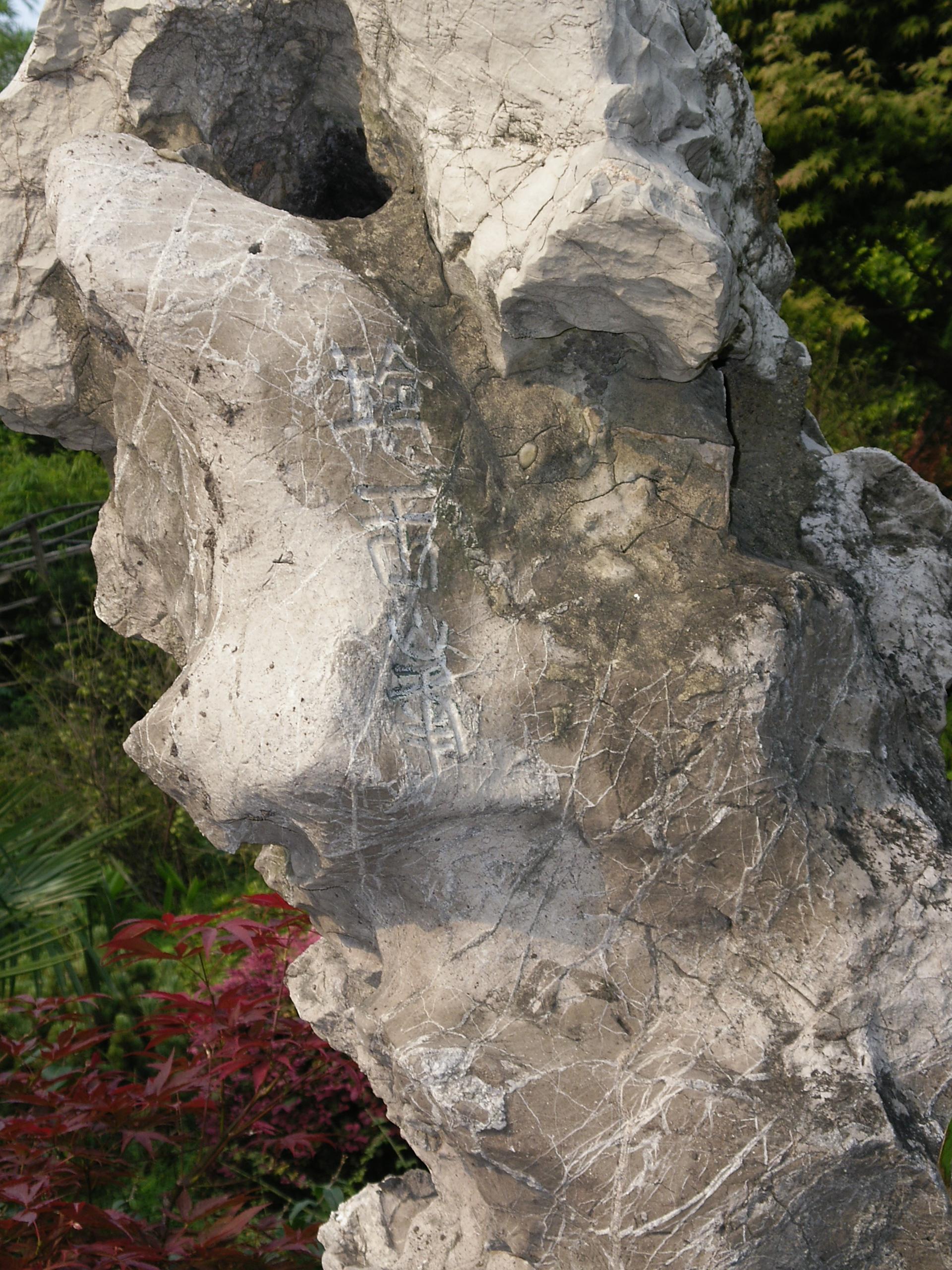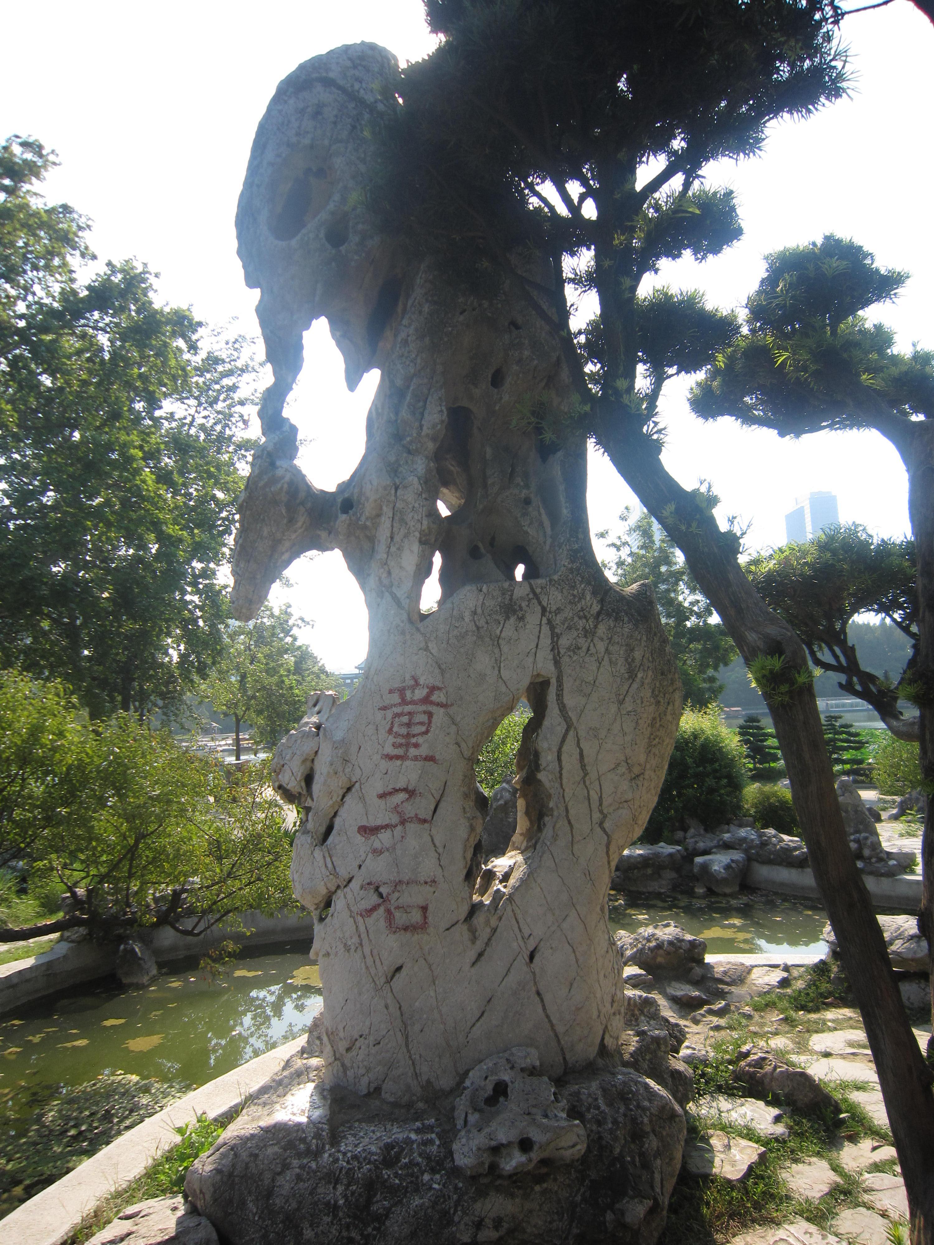 既然海棠院的洞门依然紧锁着,我只得退出瞻园,顺着园墙外的马路,来到了那家将海棠院关进在内的茶社,径自走到了“仙人峰”和“招鹤峰”身旁,谁知却给我带来了“颇有疮痍”的感觉。