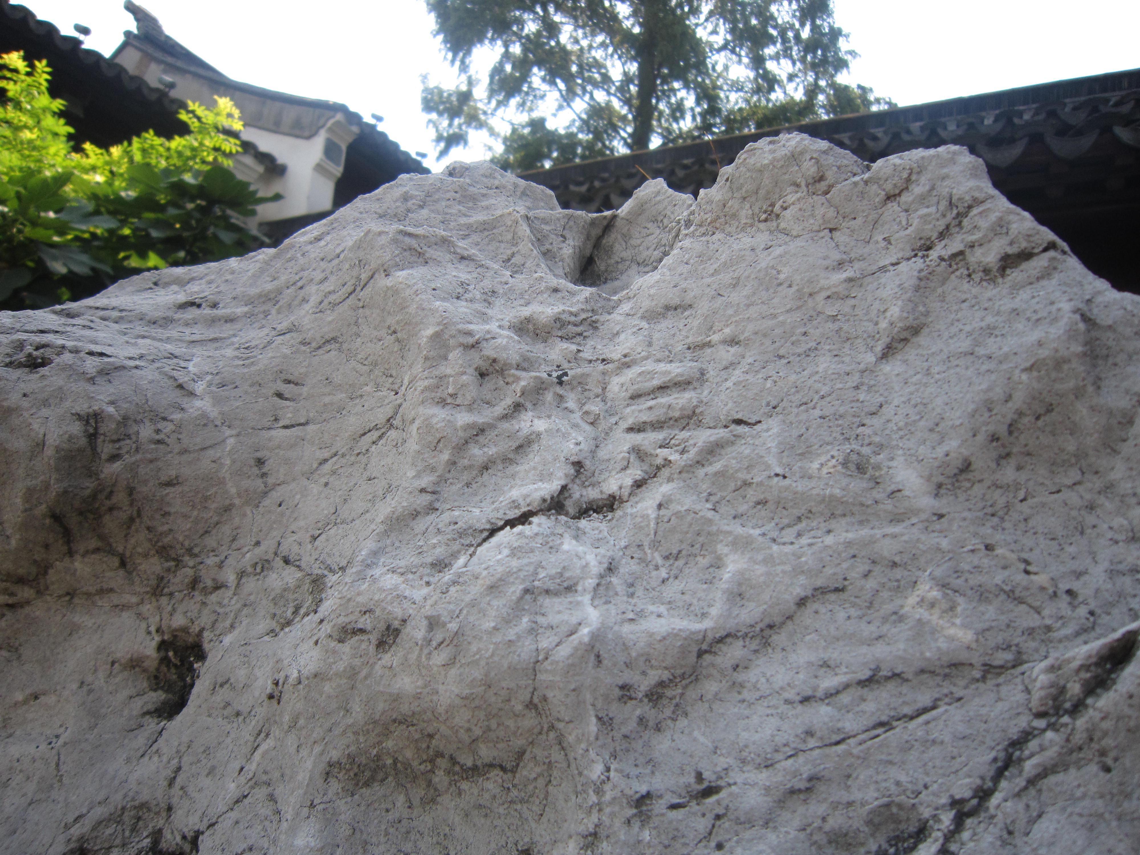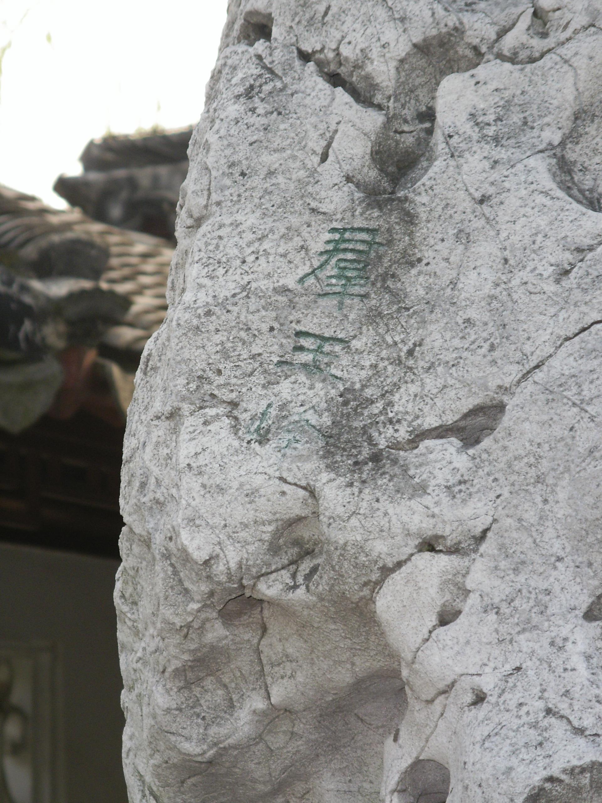 天这么热,游客不多,无人知道“雪浪石”的去向。我只得走进公园的群工部办公室。办公室里的一位姑娘告诉我,2008年瞻园扩建,向北拓展了一大片,“雪浪石”也就迁至东门口去了。感谢她在这么热的天气陪我去了东门,来到“雪浪石”旁,让我仔细地揣摩观瞻,拍了许多张数码照片。