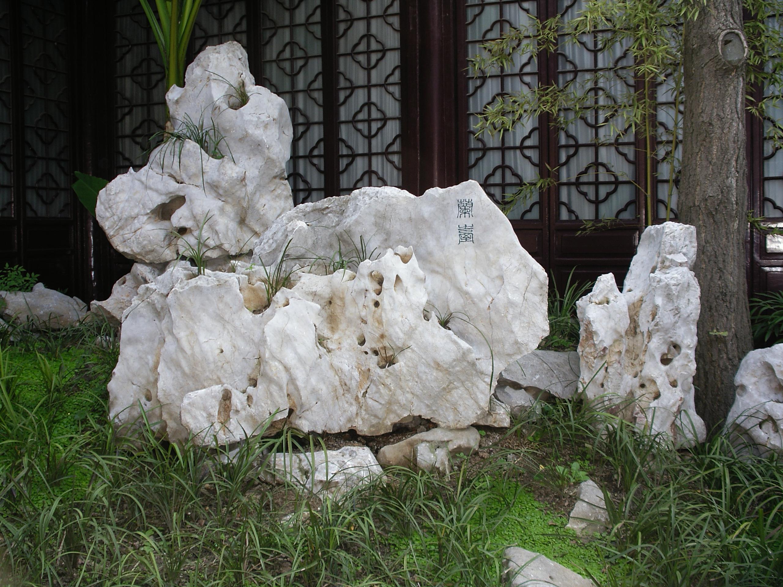 在瞻园主体建筑“静妙堂”的北侧、紫藤架前面的平地上,我很容易地找到了“群玉峰”和“玲玉峰”,题刻清晰可辨,两峰相映成辉。