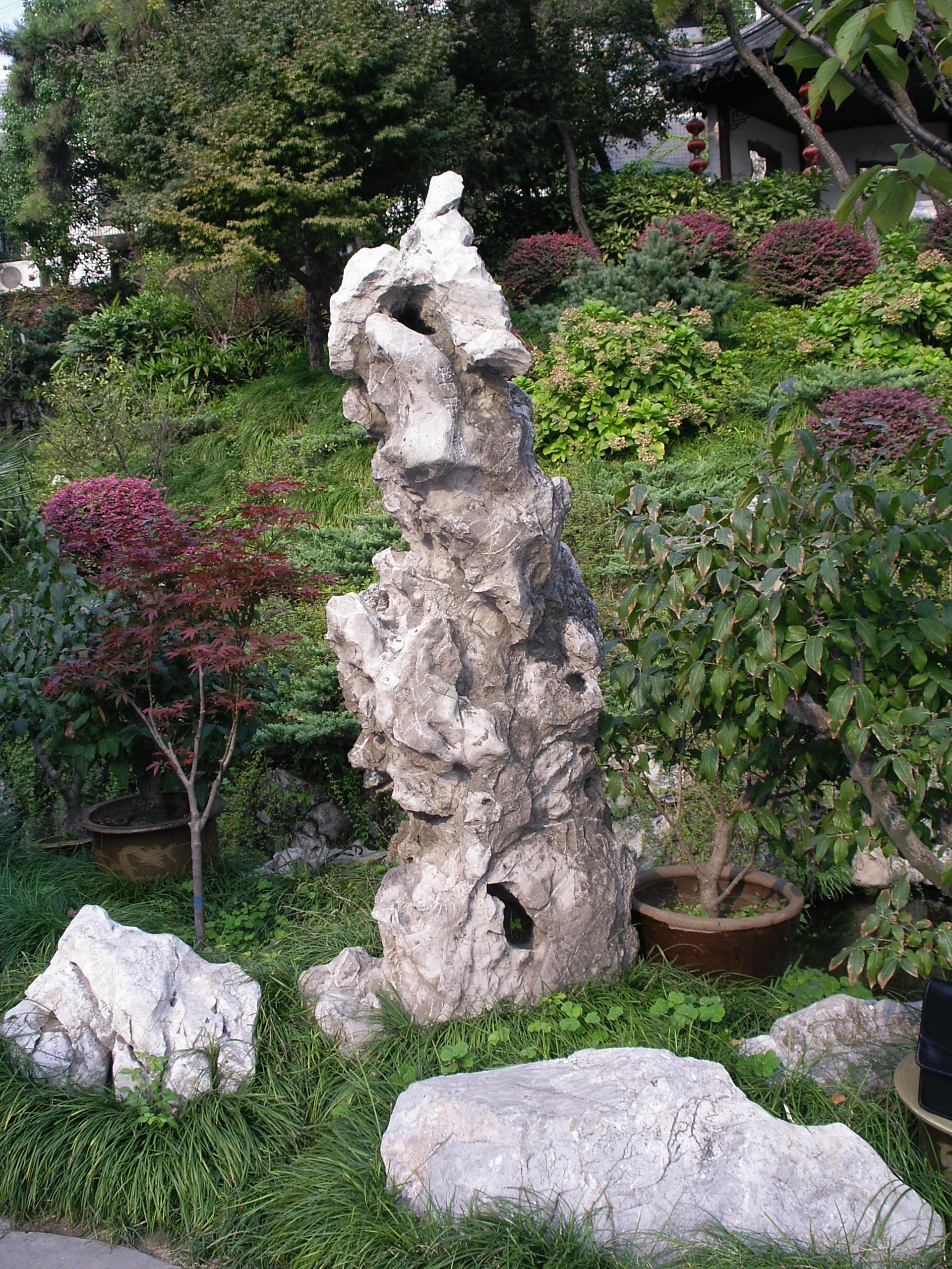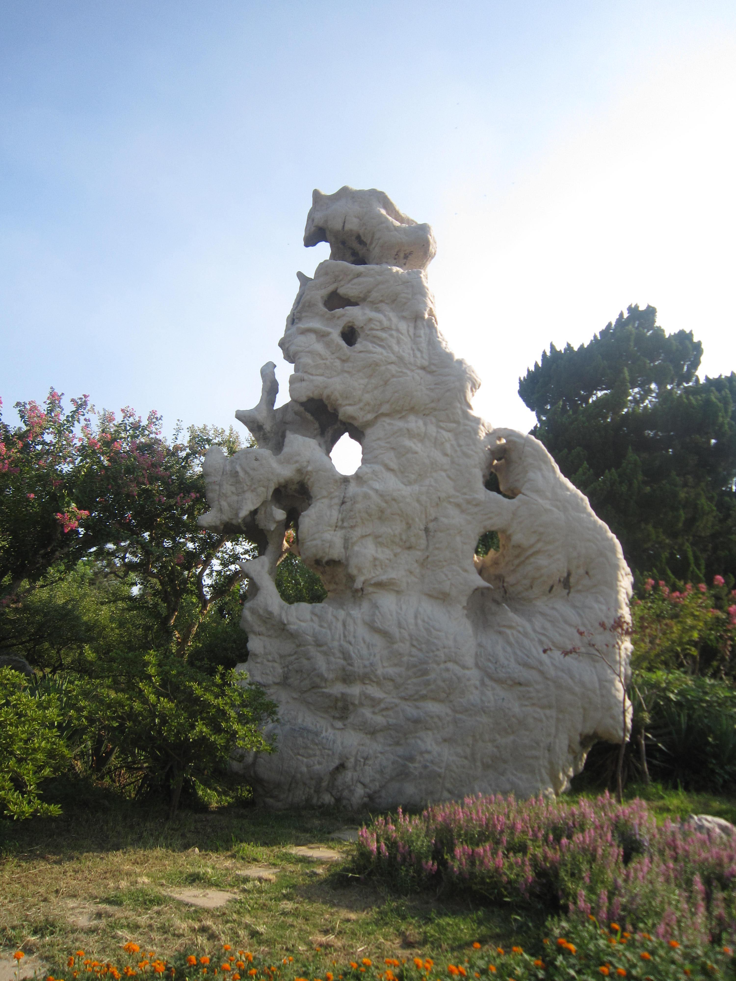 观音石形若观音、透漏兼美、亭亭玉立,高5.3米。